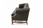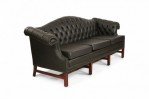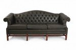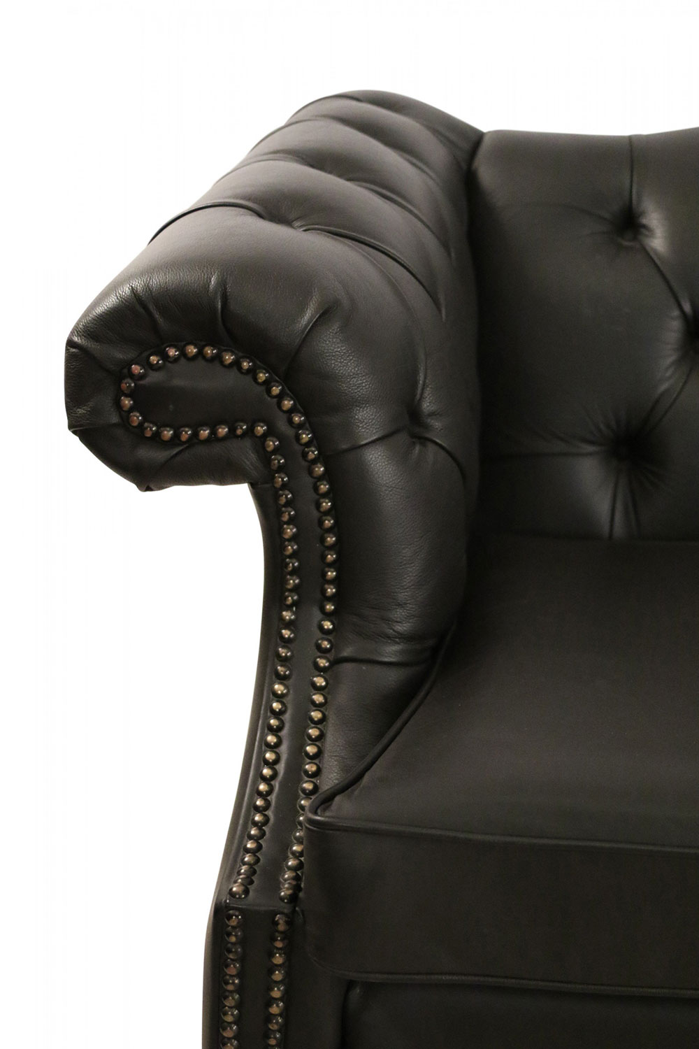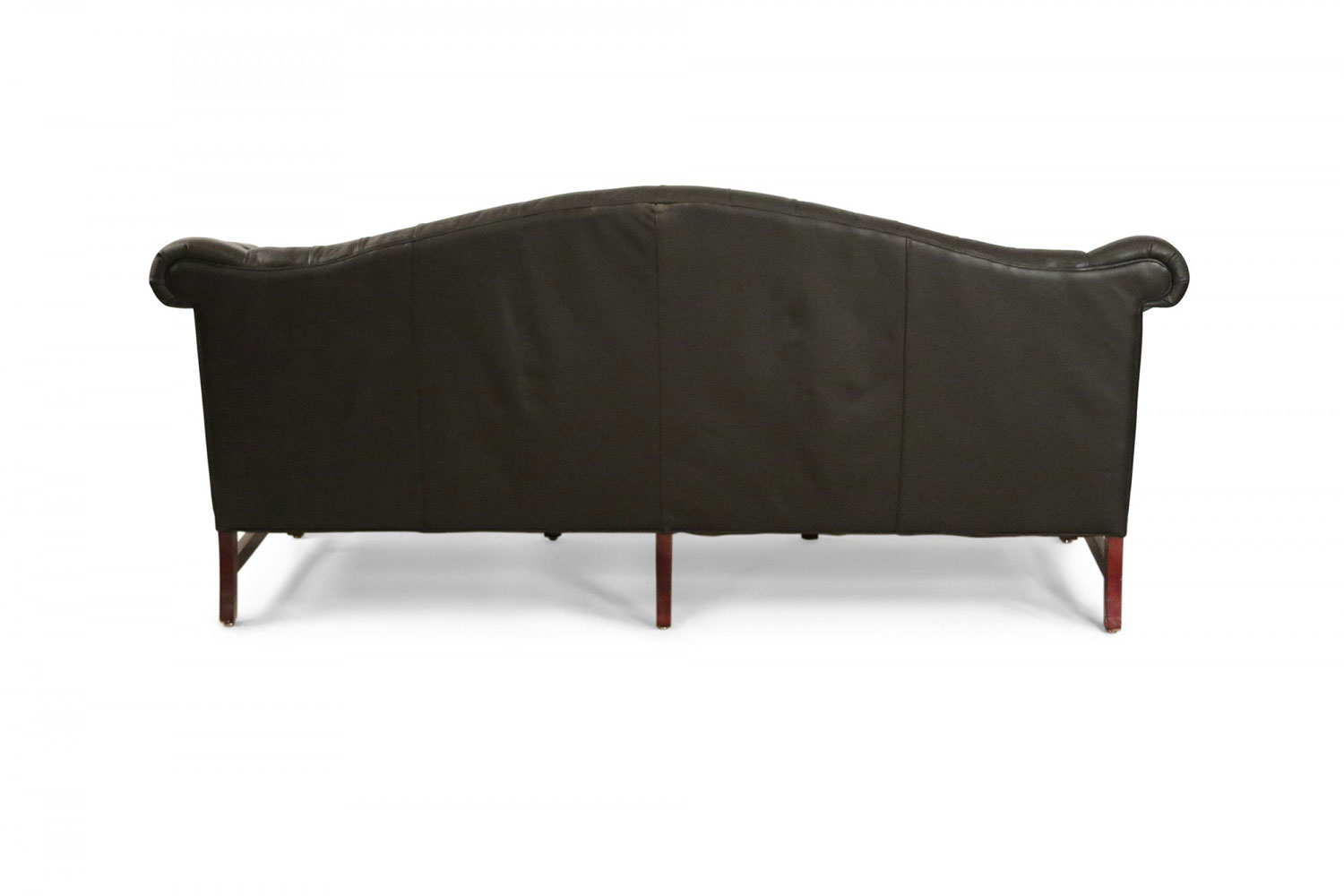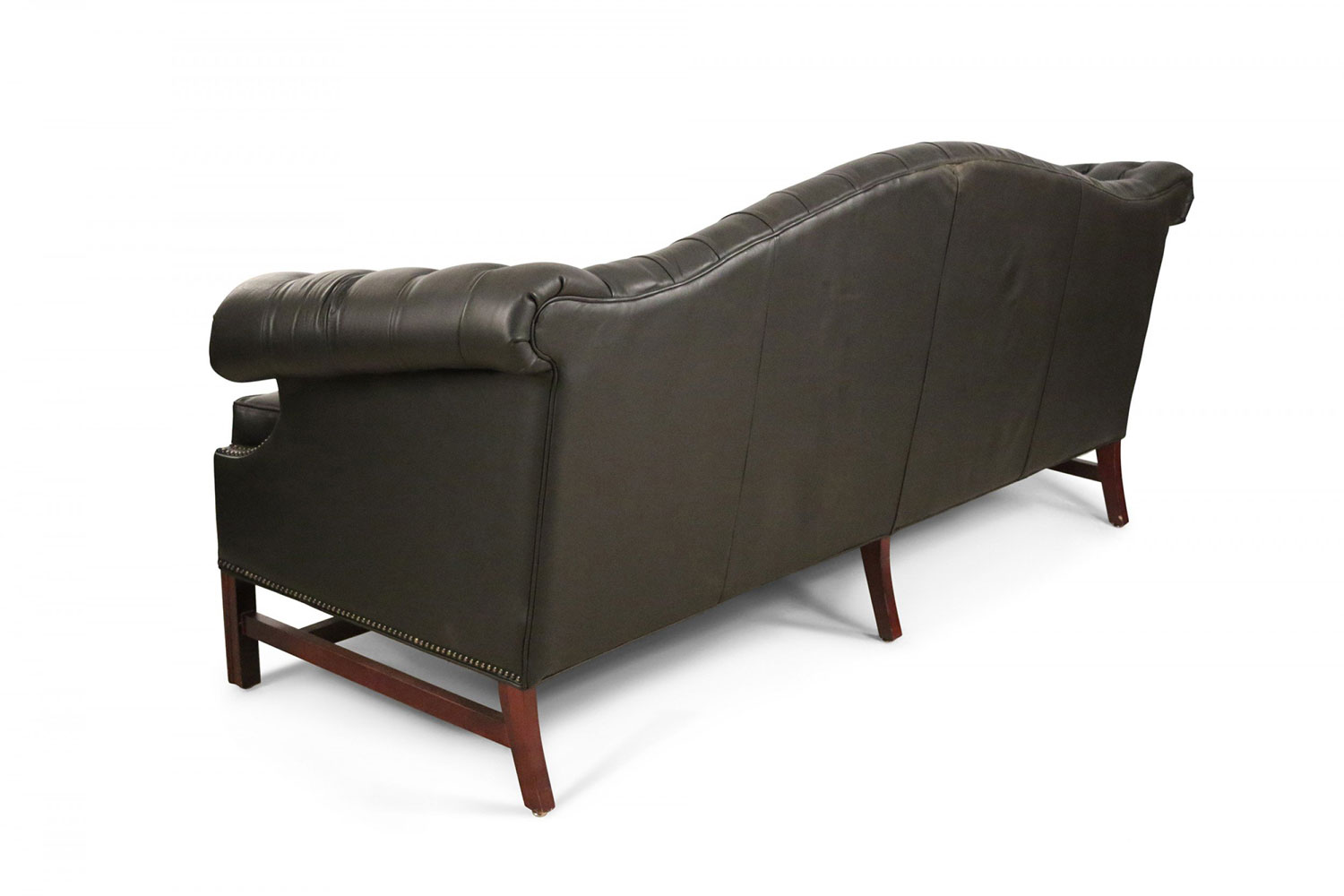 English Victorian Style Camel Back Black Tufted Leather Sofa