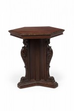 English Victorian-Style Carved Mahogany Hexagonal Occasional / End Table