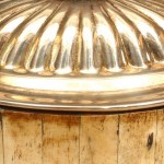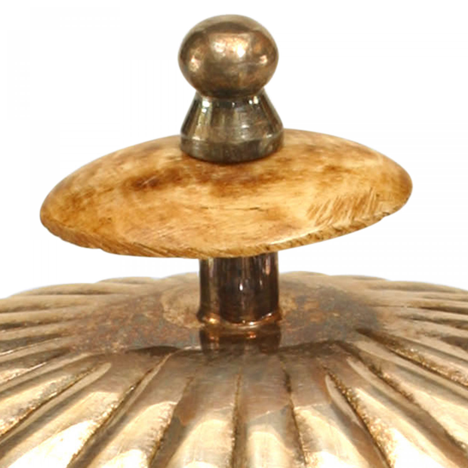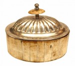 English Victorian-style (20th Century) oval veneer bone box with silver cover with fluted design and finial top. (label: Royal House-Collection Sheffield)