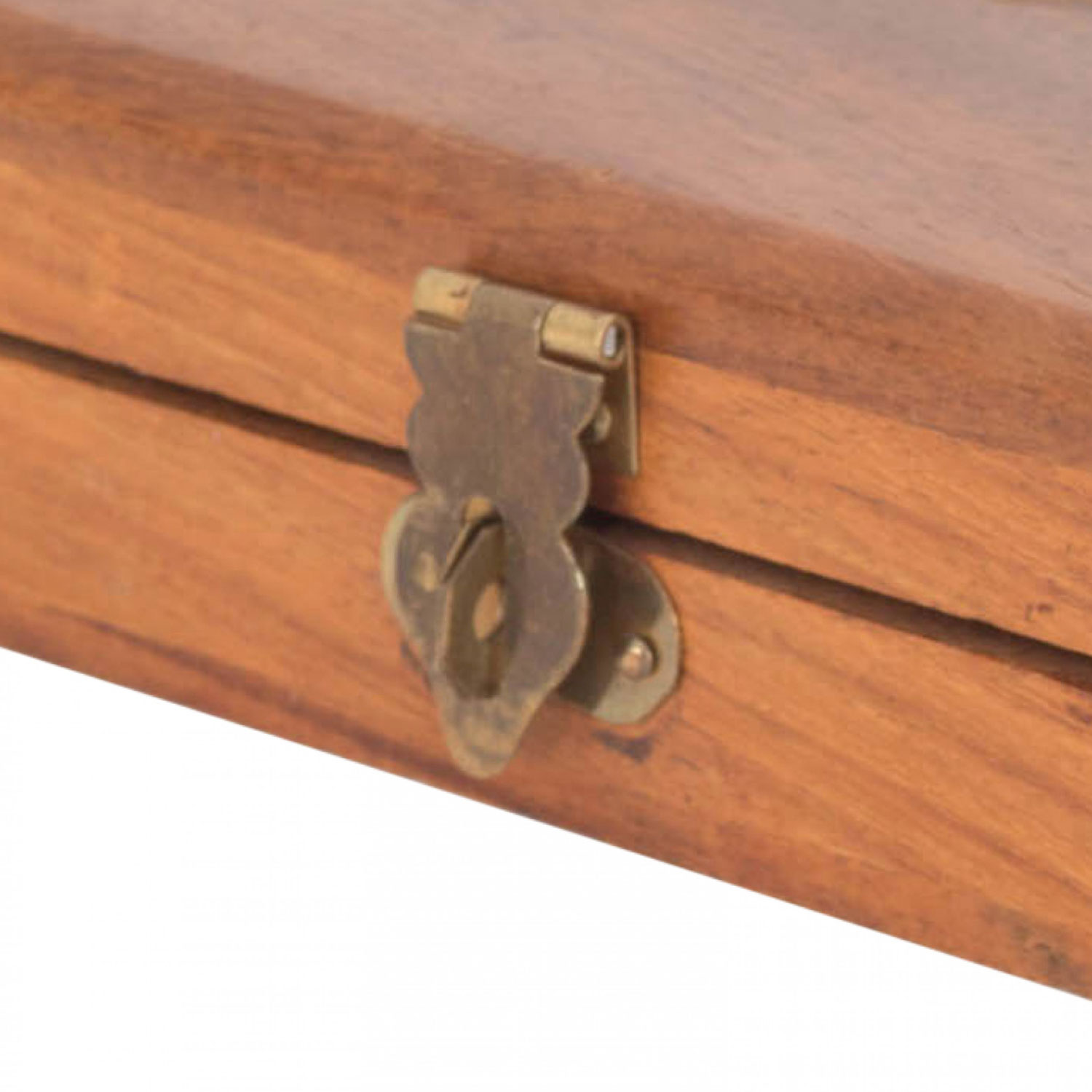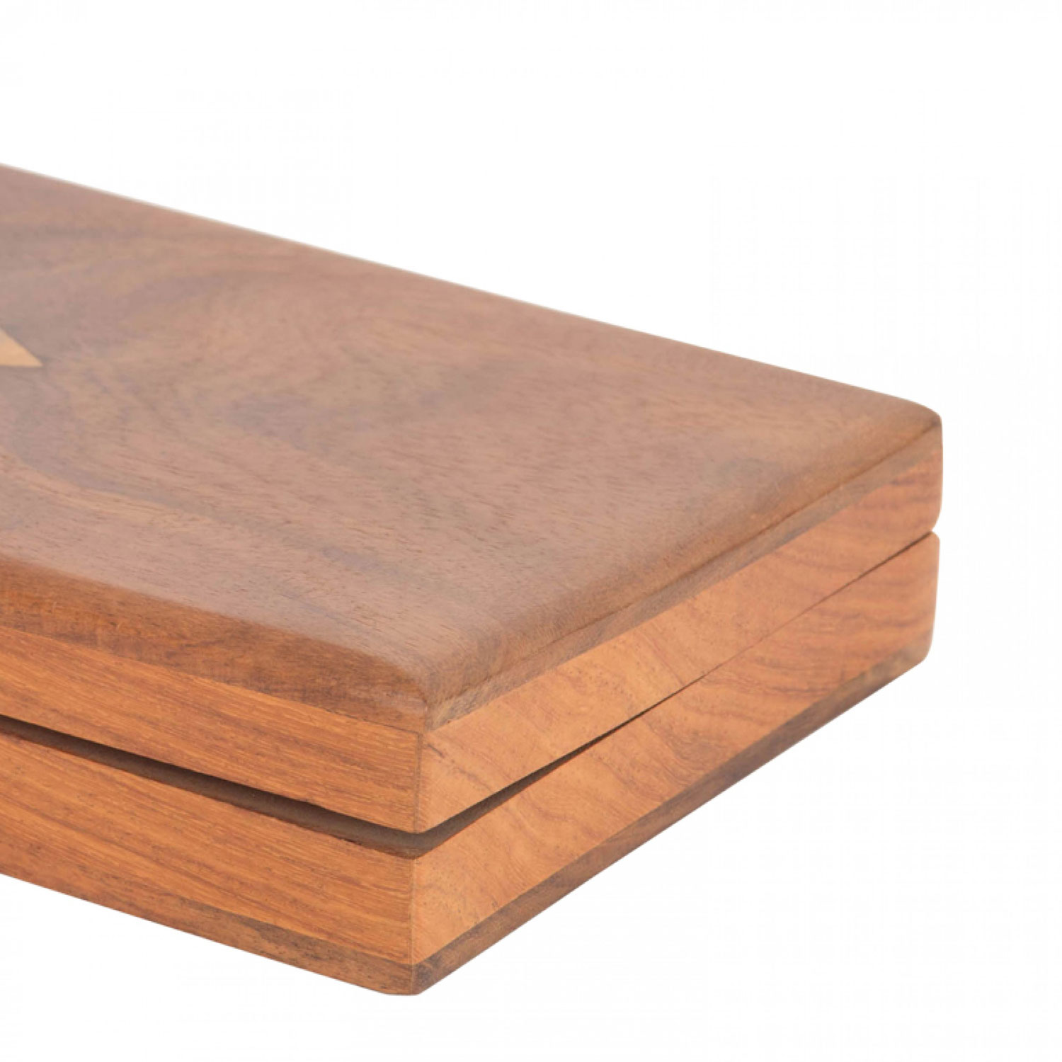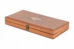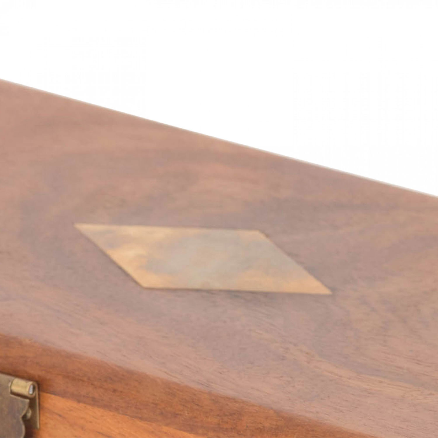 English Victorian-style rectangular walnut box with gold diamond shape inlay and latch l