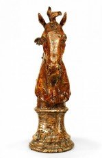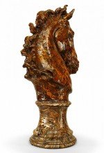 English Victorian brown marbleized glaze terra cotta life size horse head figure on round base (two sections)