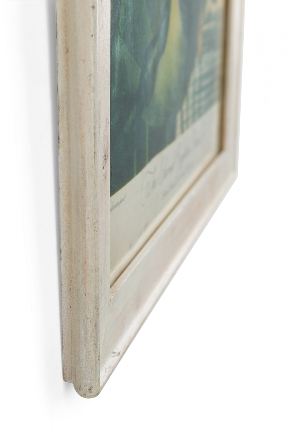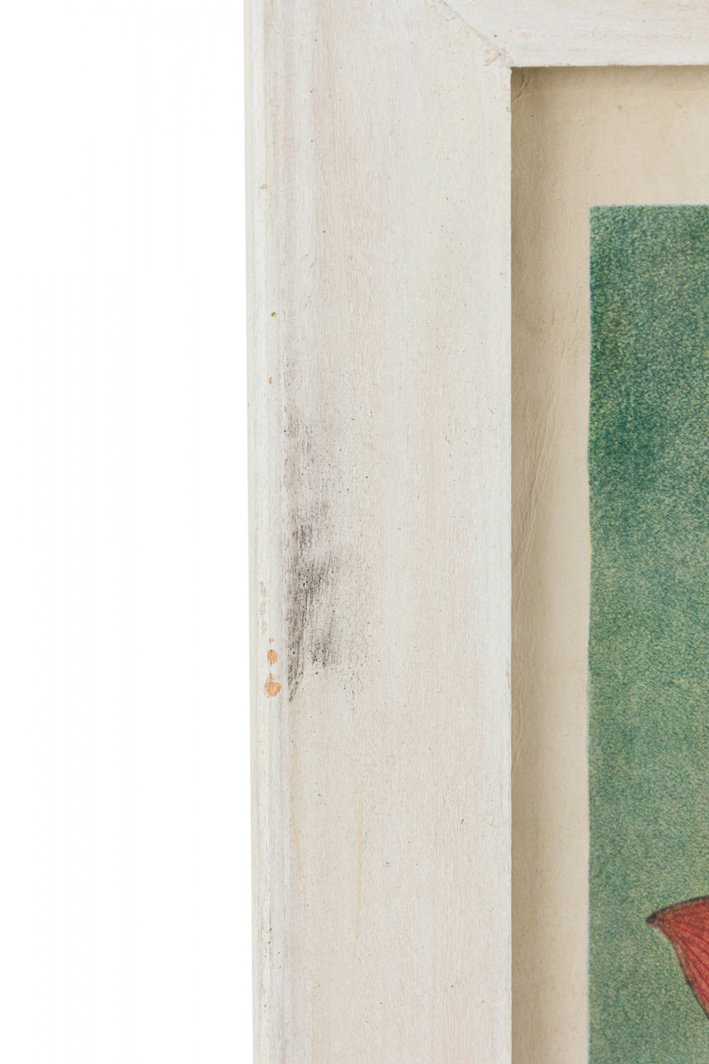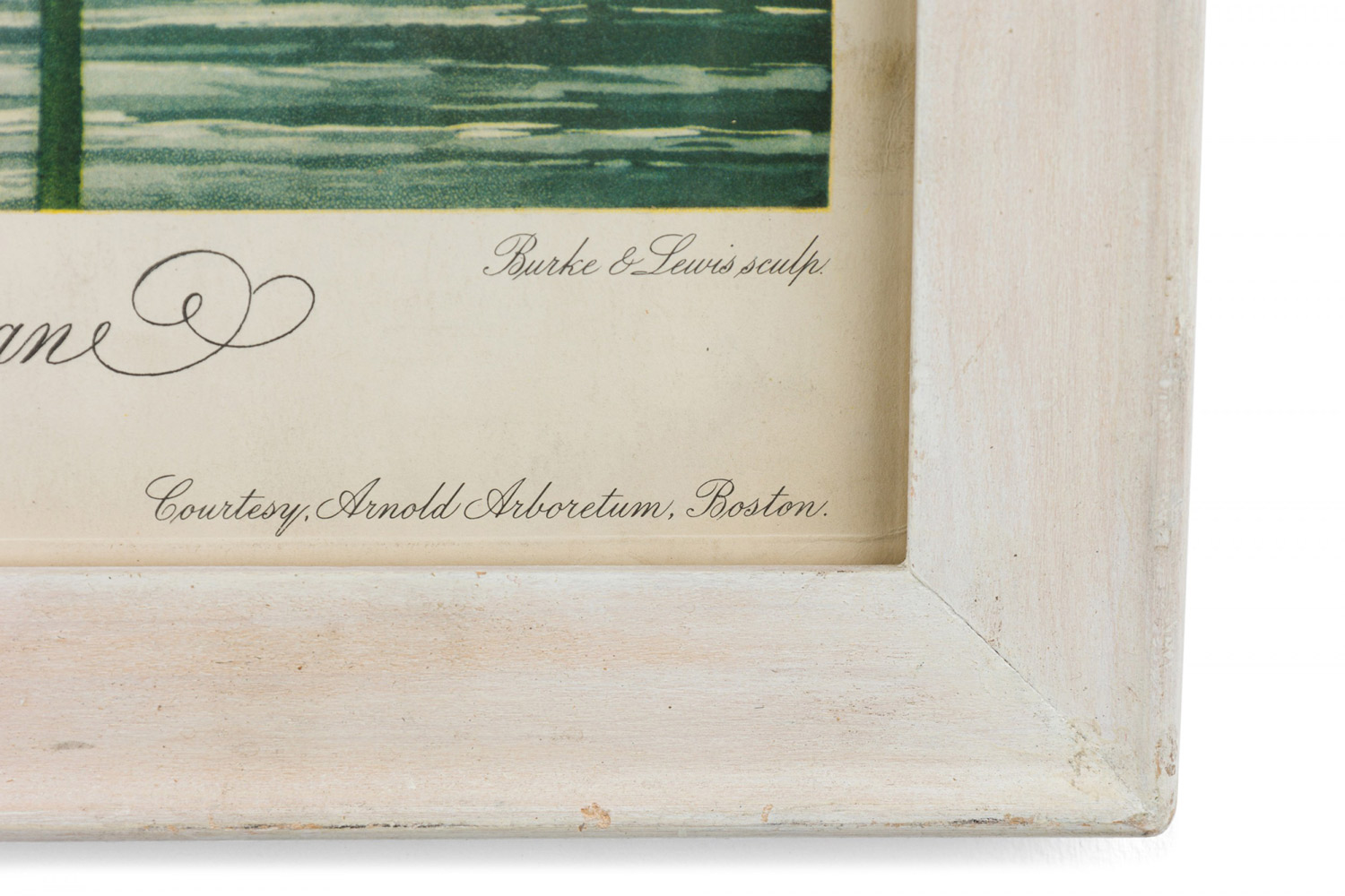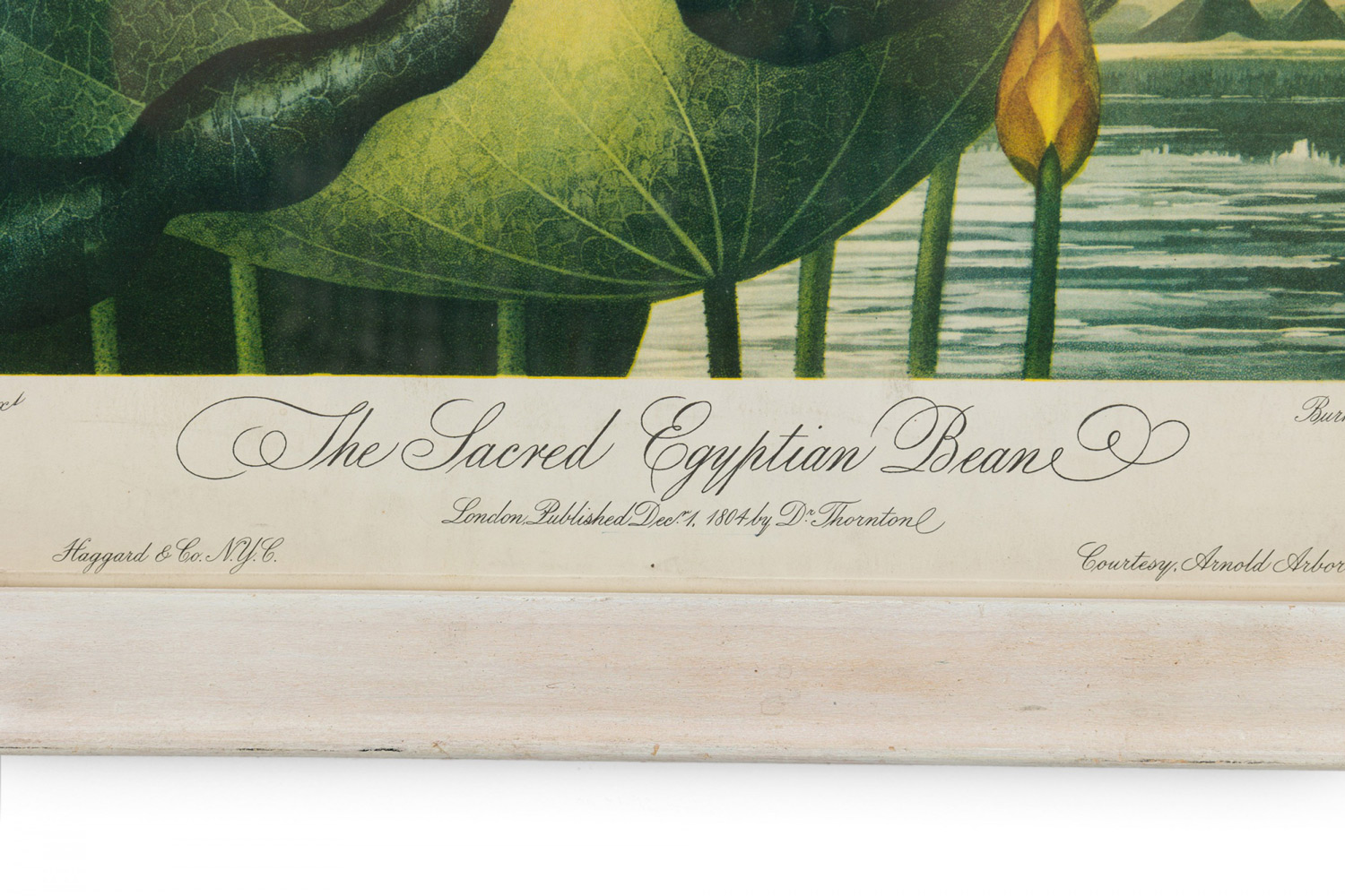 English Victorian style colored botanical print of lotus flowers titled "The Sacred Egyptian Bean" in white painted frame (after Dr. Robert John Thornton)