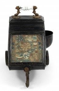 Style: English Materials & Techniques: Tole, embroidered Category: Accessories/Décor/Bric-a-Brac Condition: Antique Condition