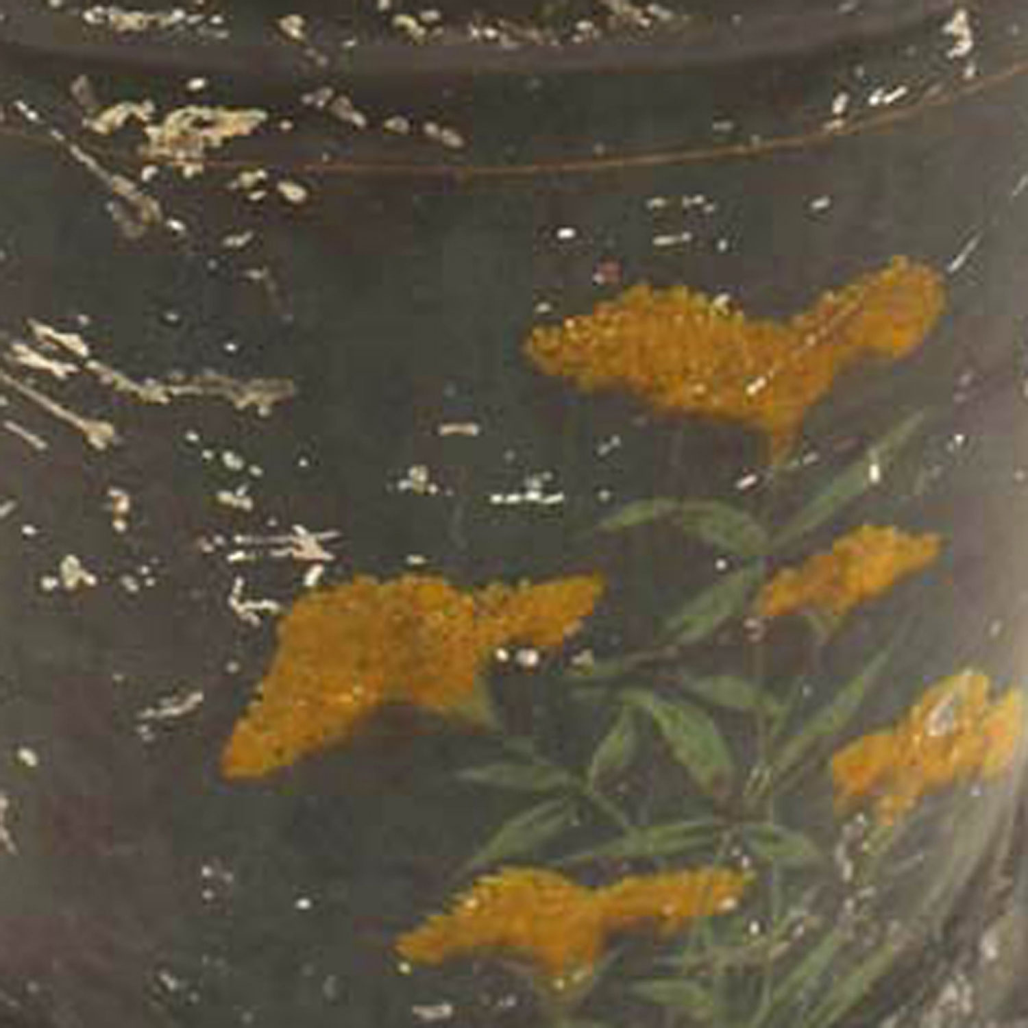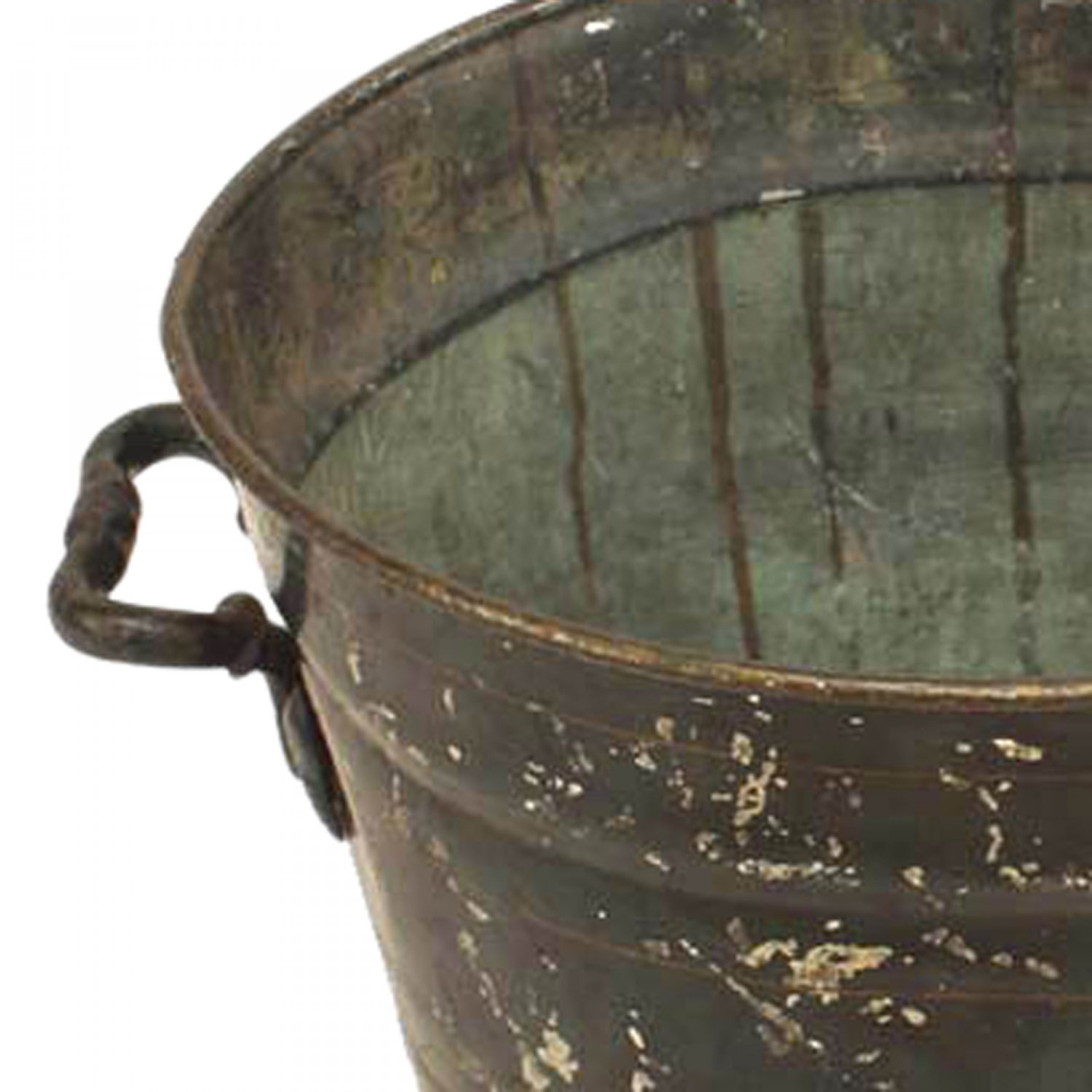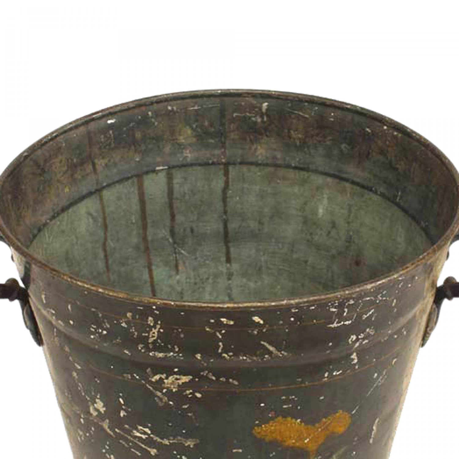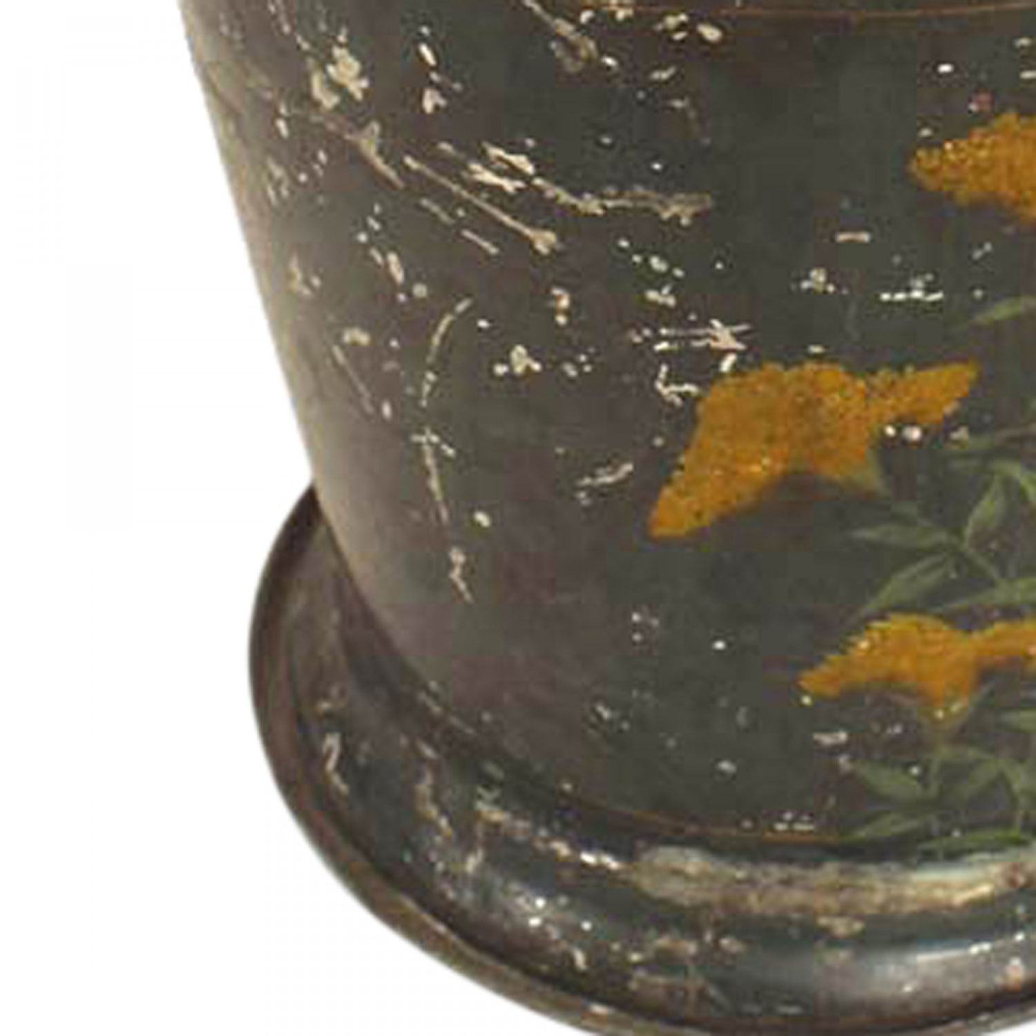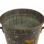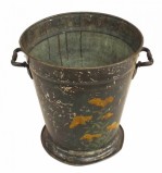 English Victorian green painted tole bucket with floral decoration and 2 handles.