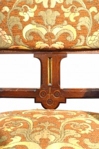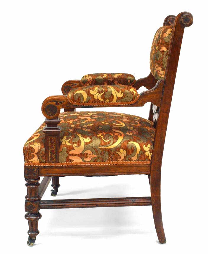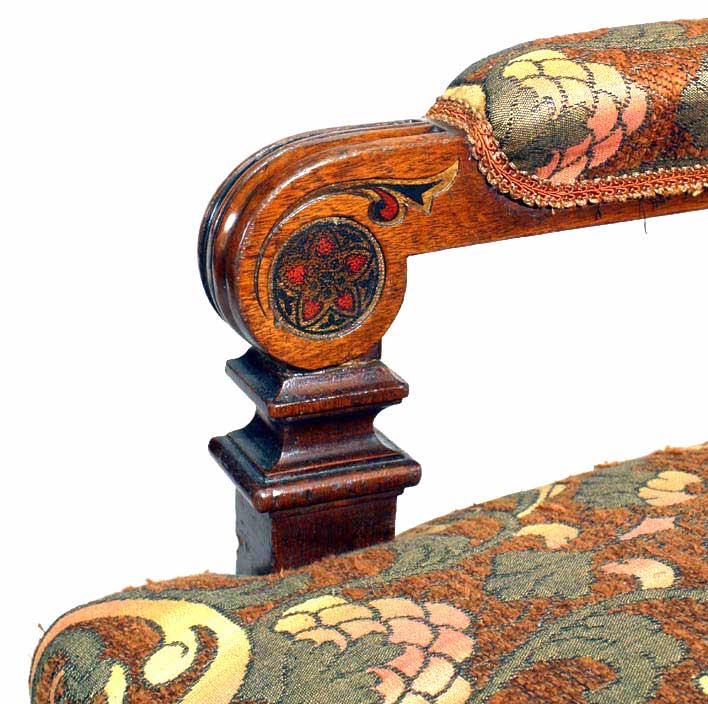 Style: English Materials & Techniques: Textile, upholstered, walnut, wood Category: Seating Good; Wear consistent with age and use