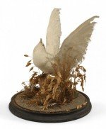 English Victorian diorama of taxidermy white dove in naturalistic setting on round black base (AS IS-repairs to bird)