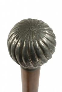 Style: English Materials & Techniques: Pewter, wood Category: Stands/Racks Condition: Some losses, top 1.5" depth Good; Wear consistent with age and use