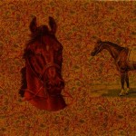 English Victorian-style wood decorated box with horse heads and horses