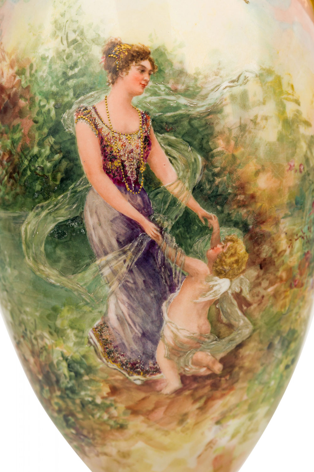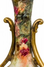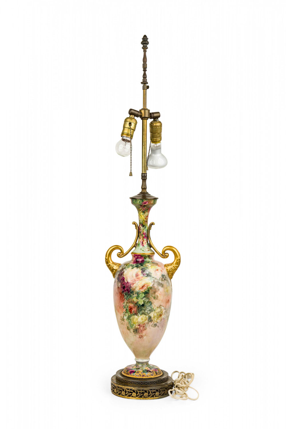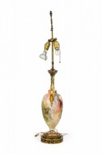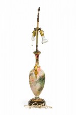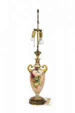 English Victorian style Floral Motif Ceramic and Brass Urn Form Table Lamp