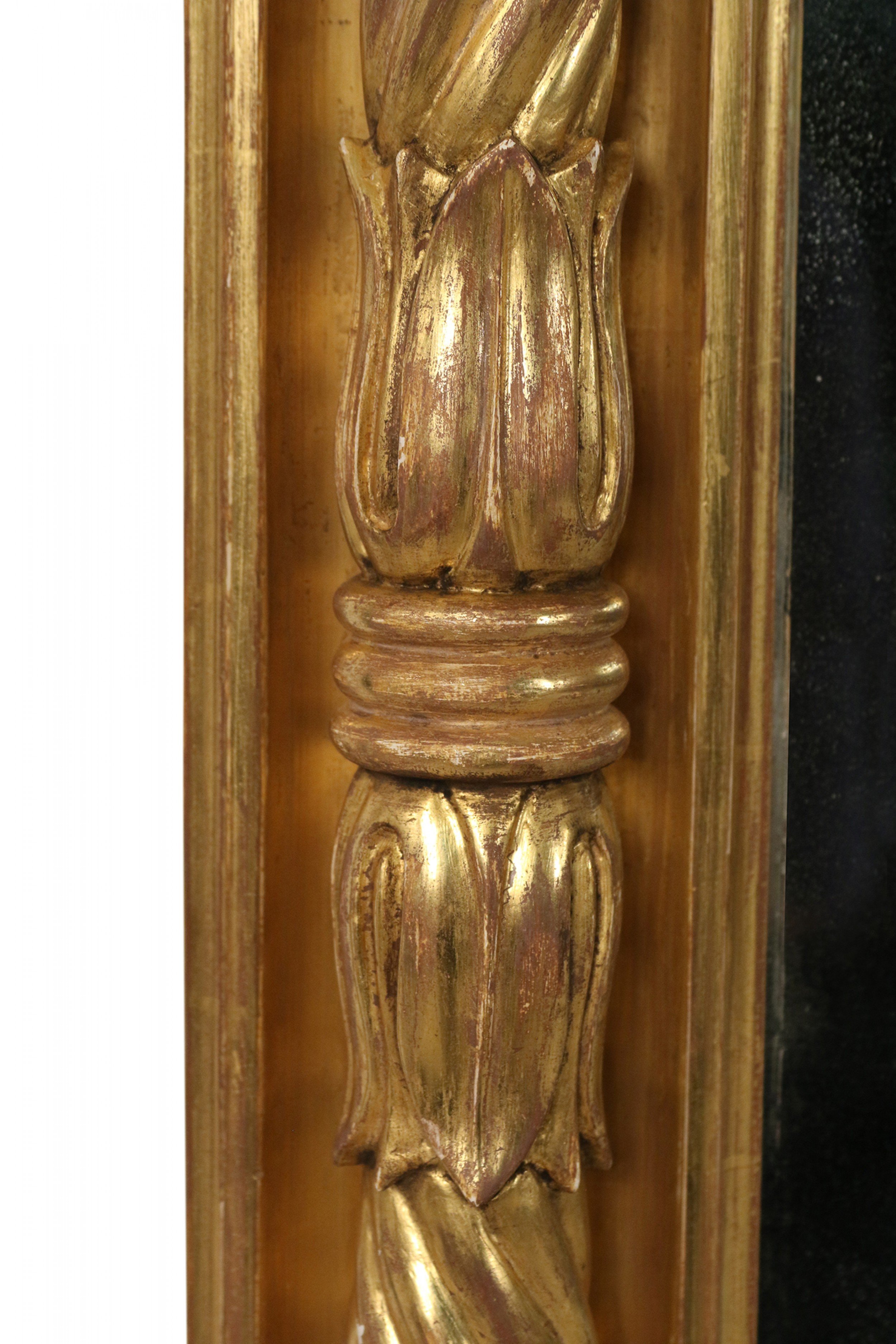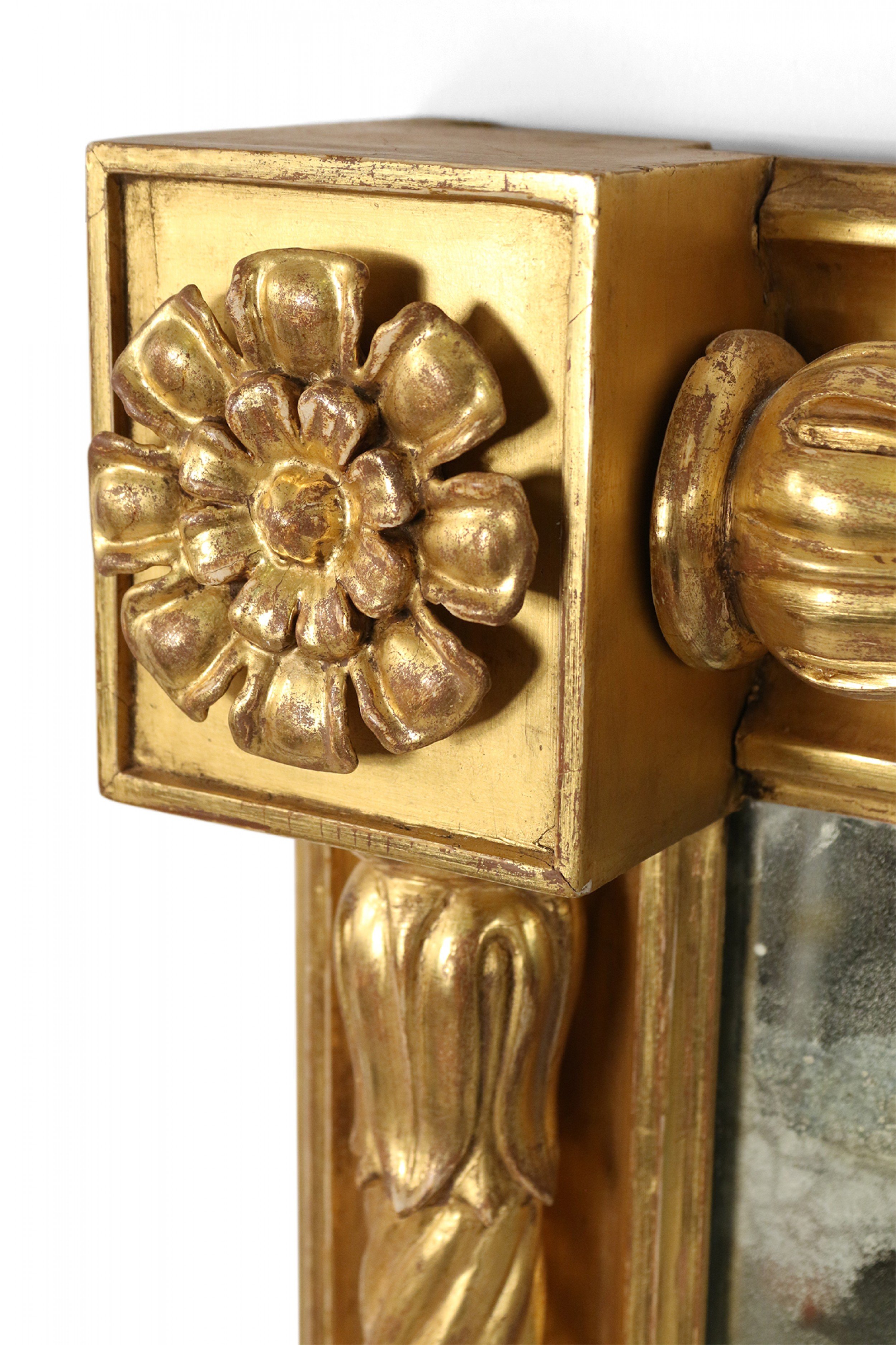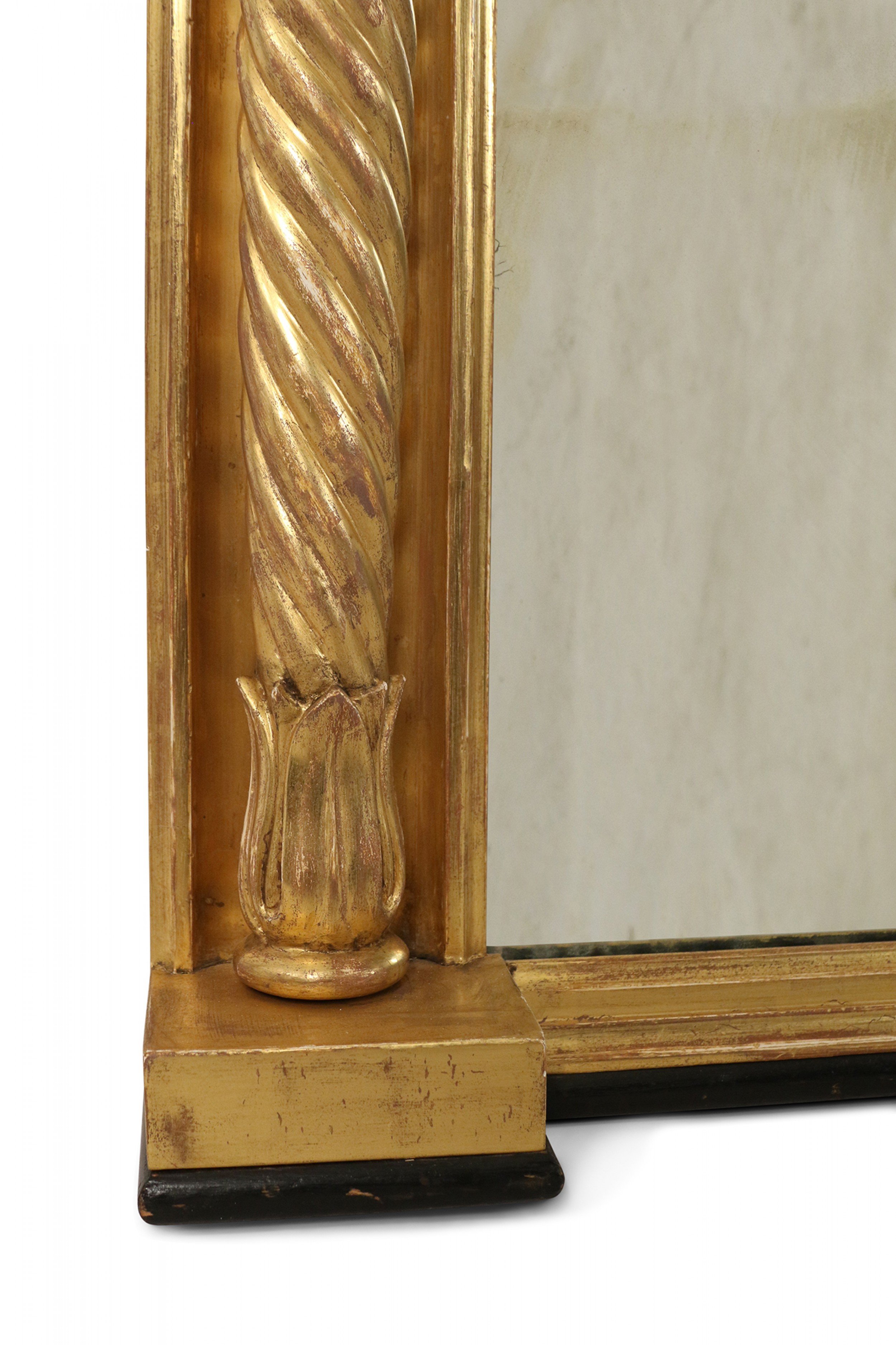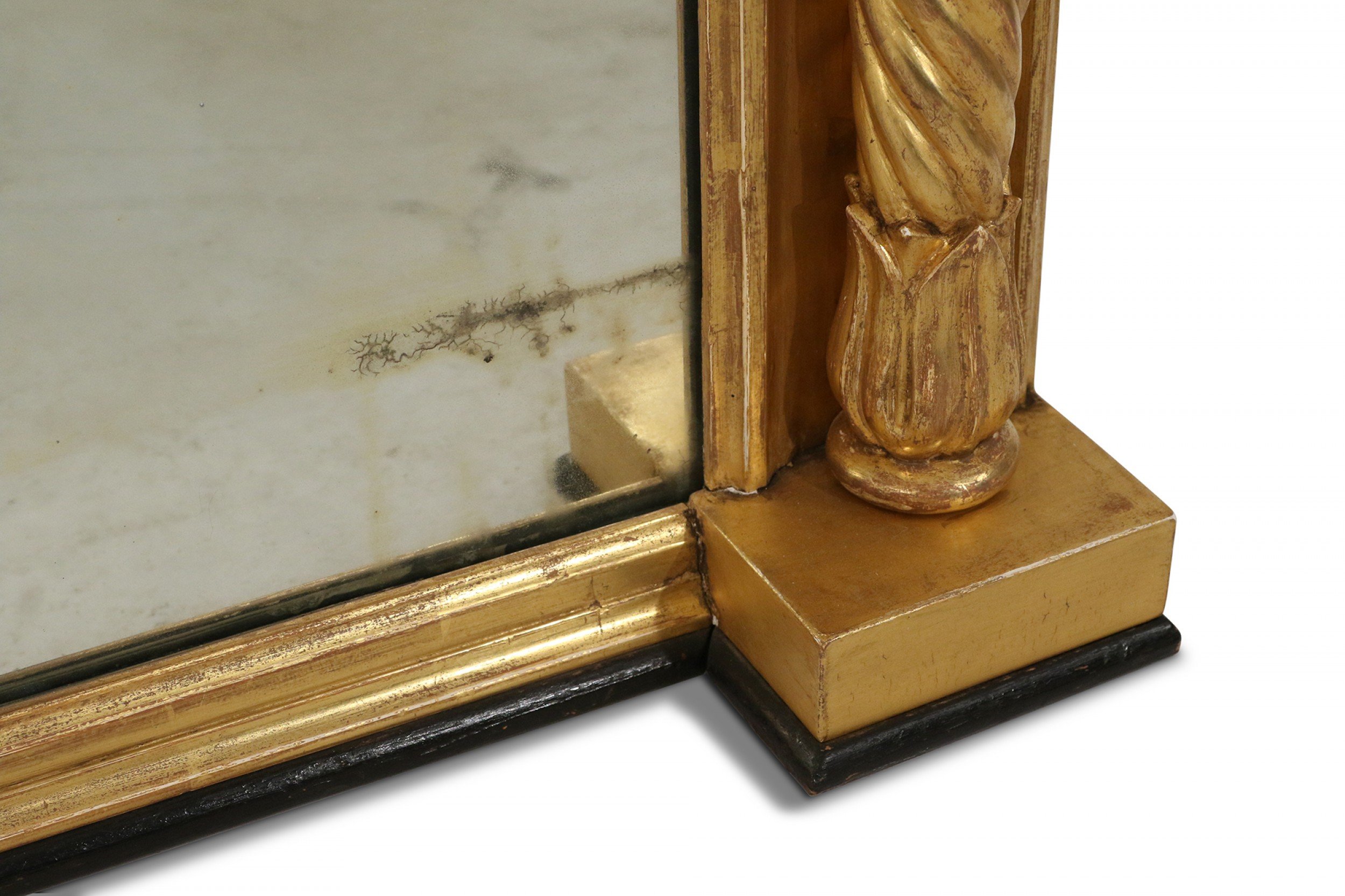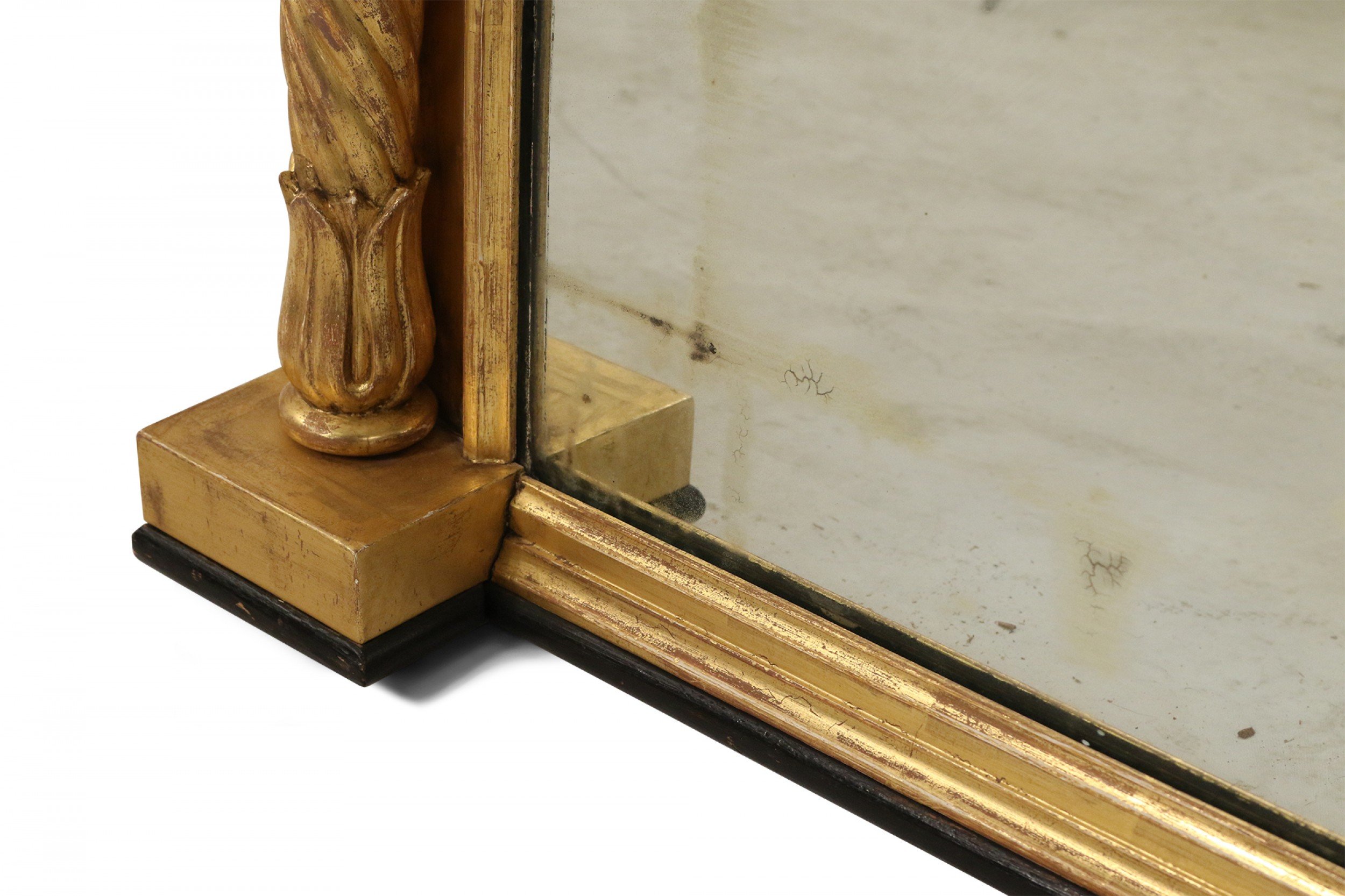 English William IV large carved giltwood horizontal (over-mantle) wall mirror with swirl carved column border..