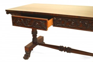 Style: English Materials & Techniques: Carved, rosewood, wood Category: Tables Good; Wear consistent with age and use