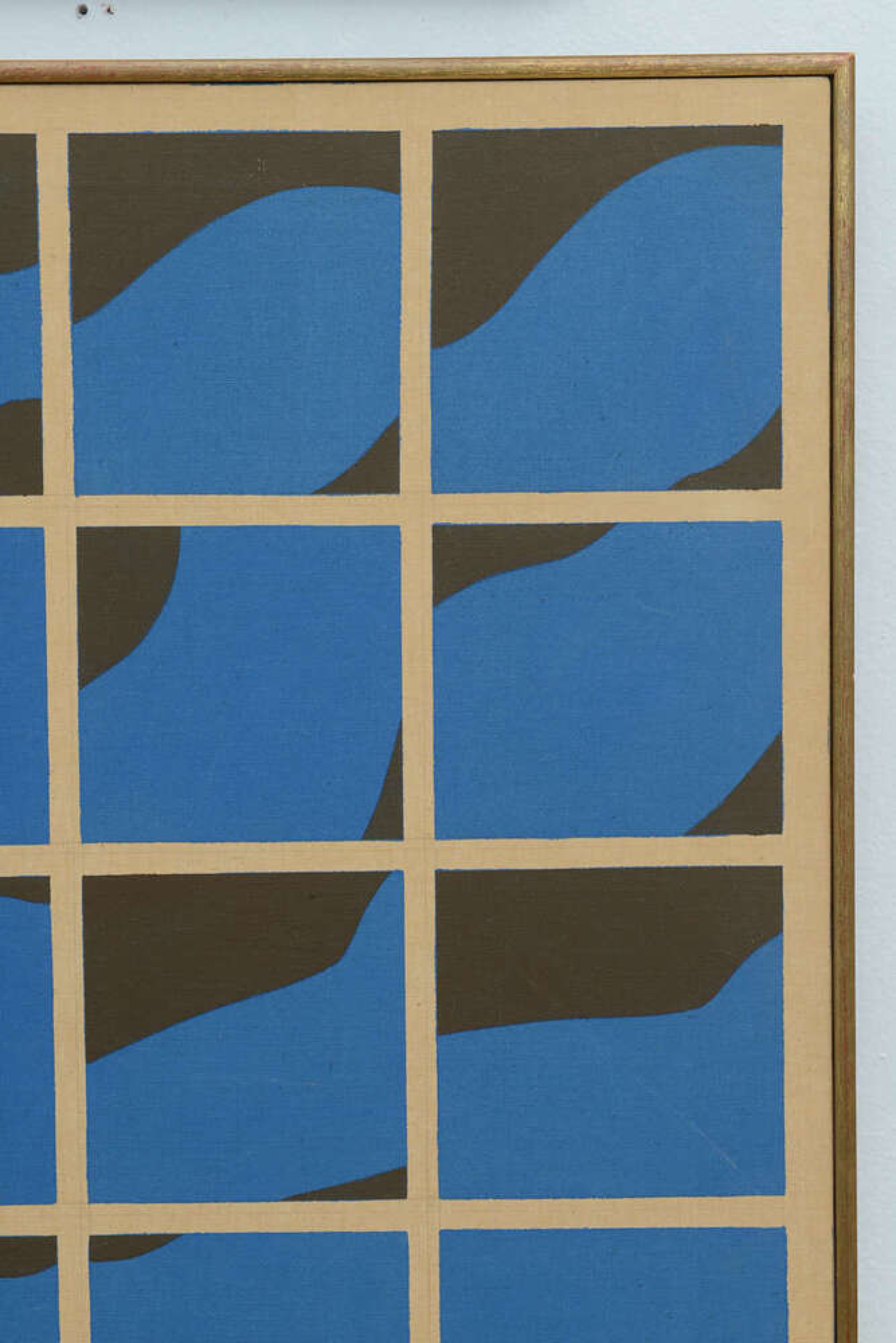 American Contemporary silkscreen oil on canvas depicting an increasingly close profile in twelve segments in blue on black. titled "Canto Profile Sections II" 1970 (ERNEST TROVA)