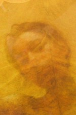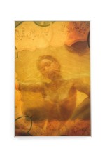 Contemporary Abstract mixed media artwork of a female figure superimposed over a smoky amber lace, printed and modified into an LED lightbox (EVA PETRIC).