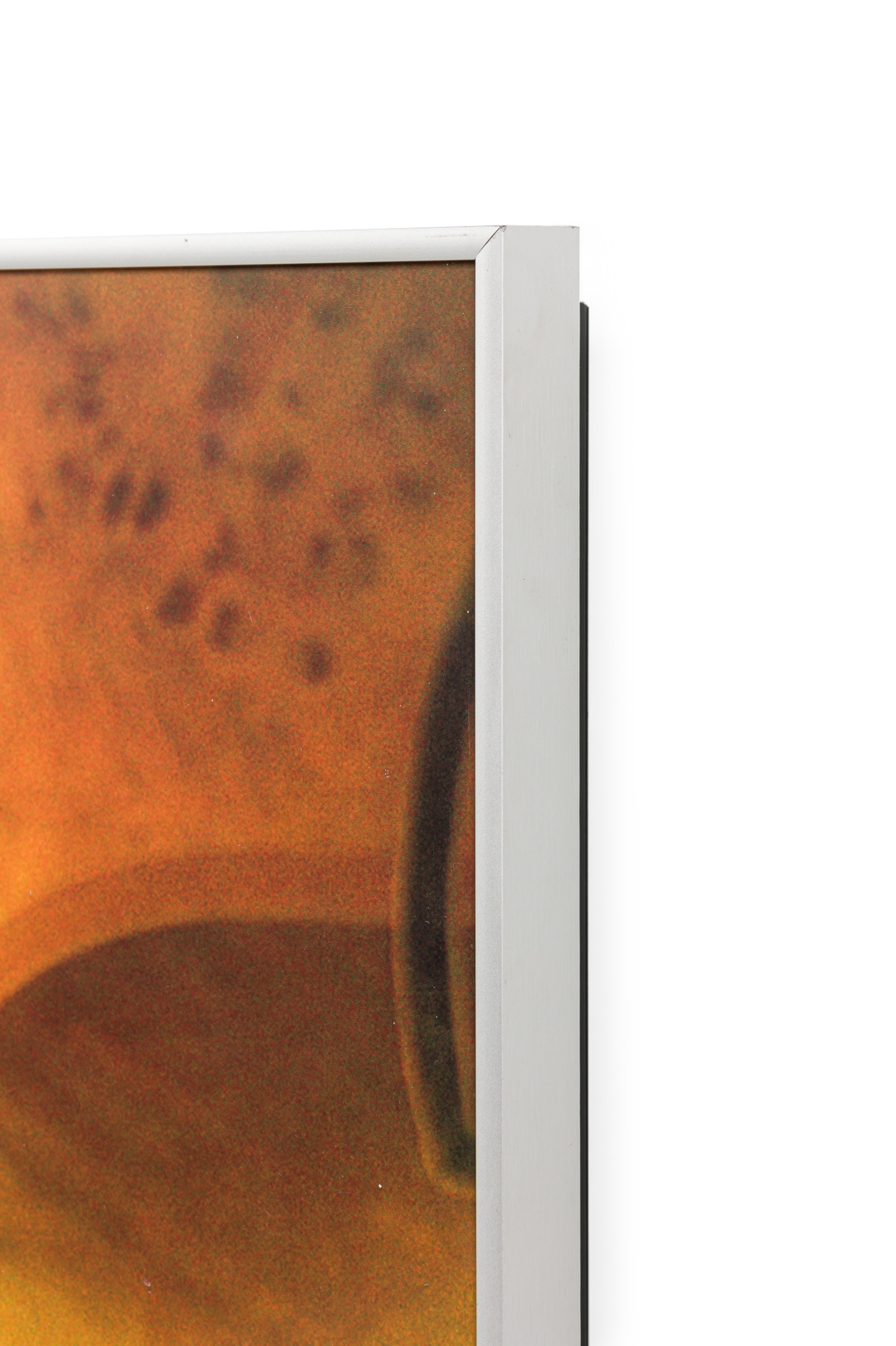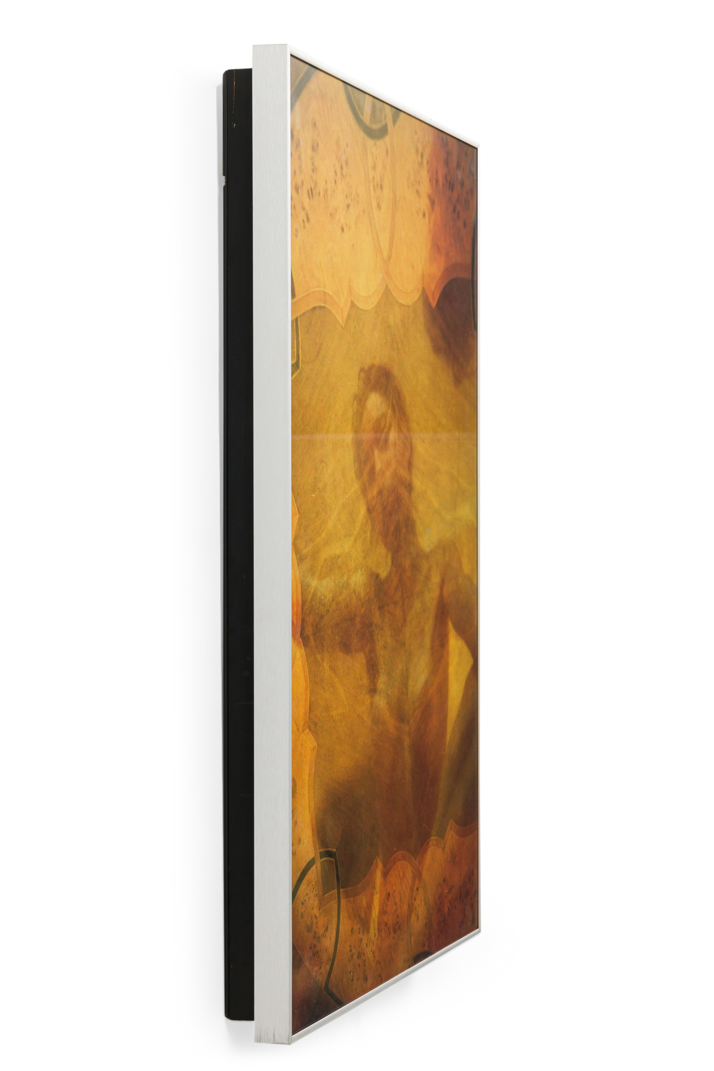 Contemporary Abstract mixed media artwork of a female figure superimposed over a smoky amber lace, printed and modified into an LED lightbox (EVA PETRIC)