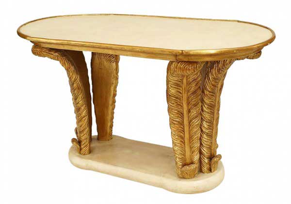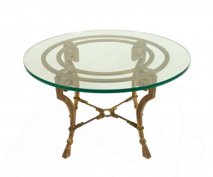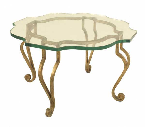 Style: Mid-Century Materials & Techniques: Gilt / giltwood, glass, metal Category: Tables Condition: Vintage Condition. Good; Wear consistent with age and use