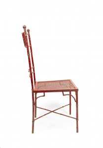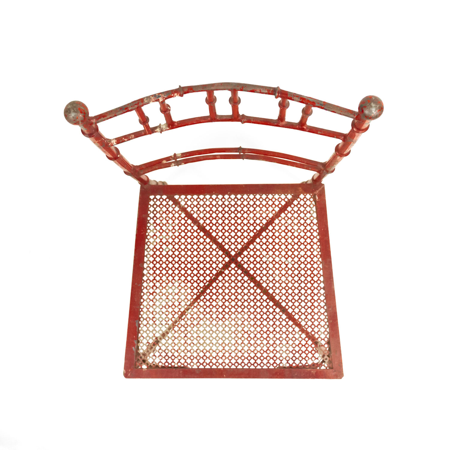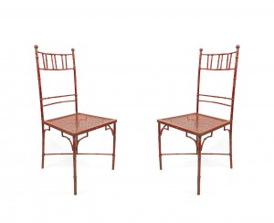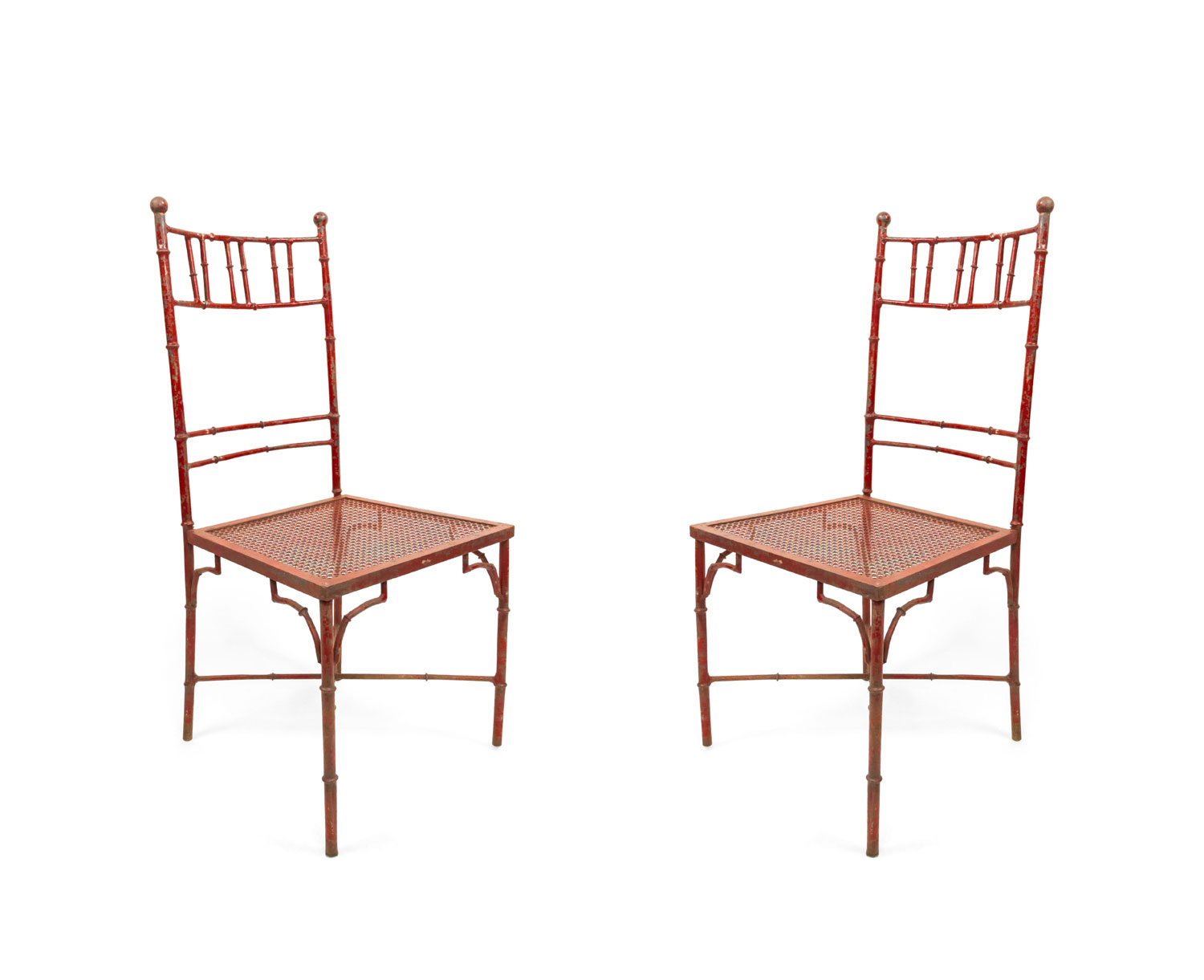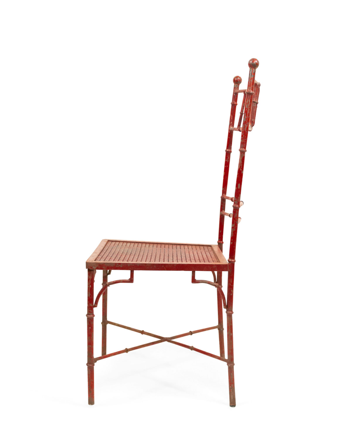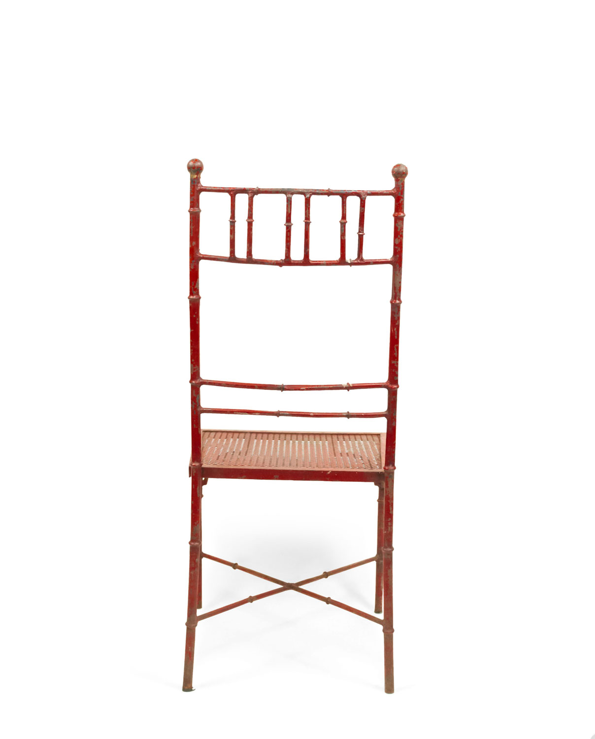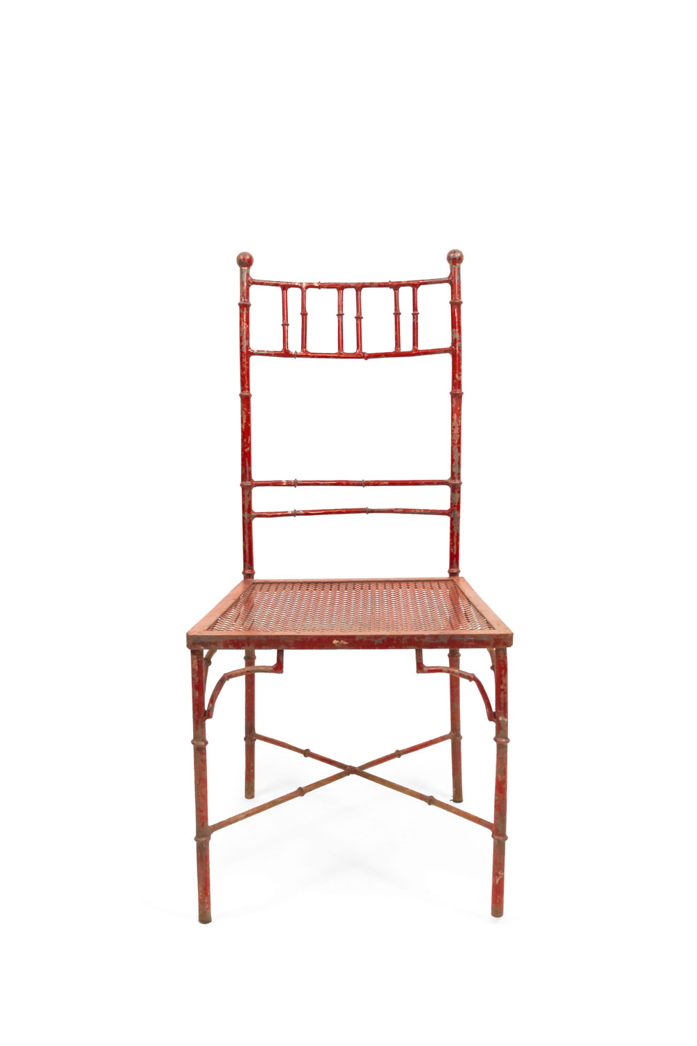 32 Faux bamboo (19/20th Cent) painted iron (ballroom) side chairs with perforated seat and spindle back (PRICED EACH).
