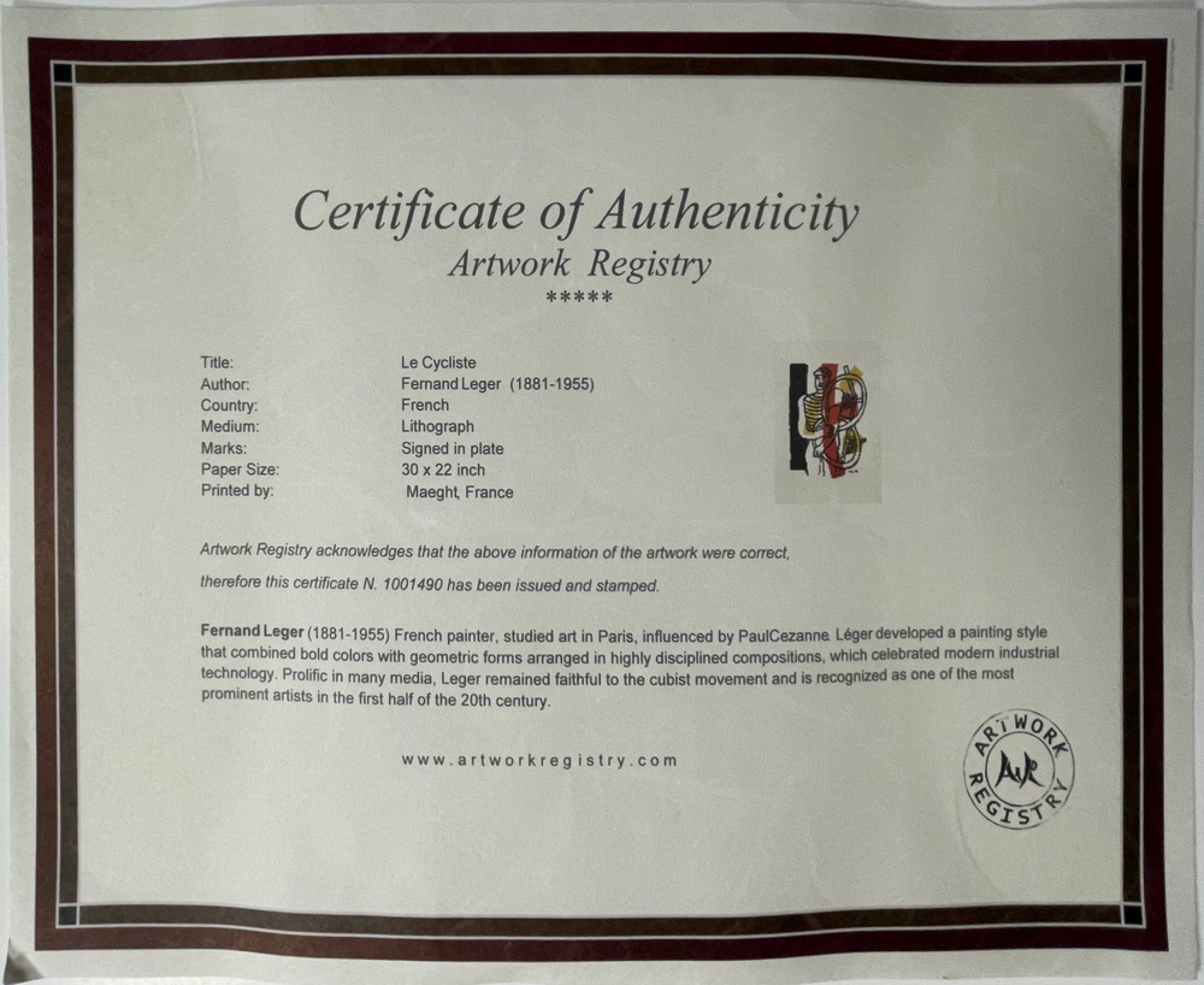 Fernand Leger French Art-Deco Abstract Print, Titled "The Cyclist"