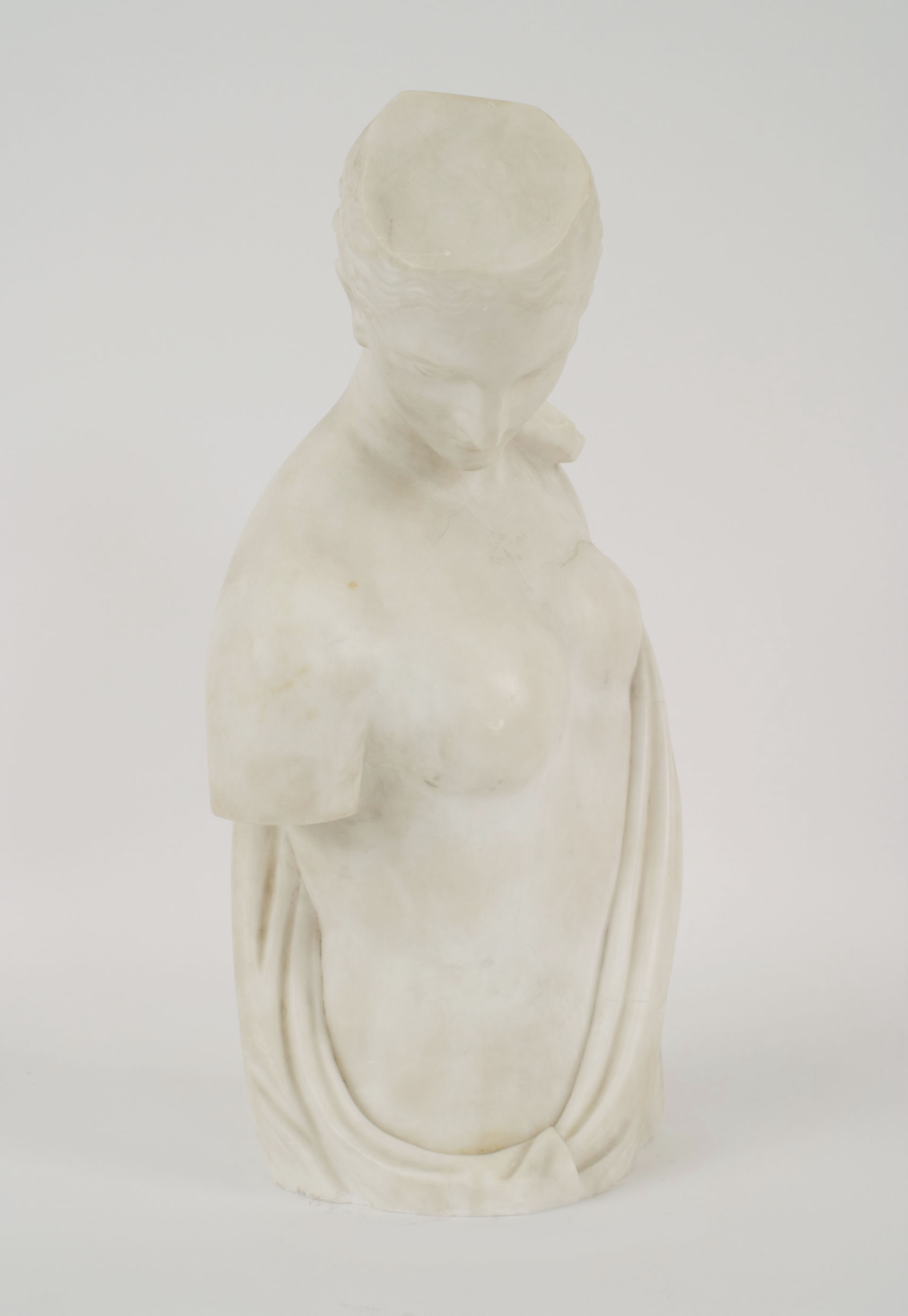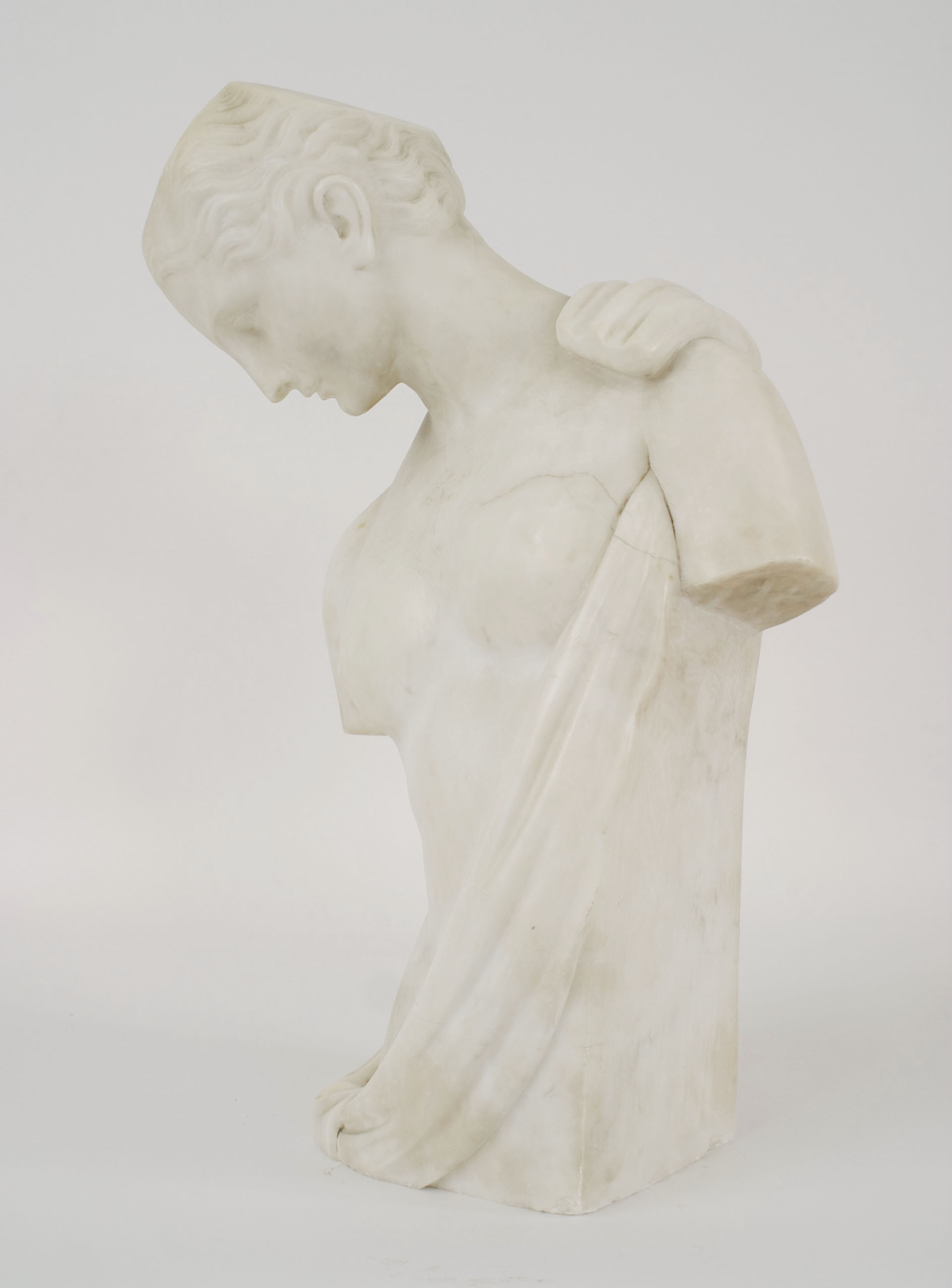 Classical Grecian (20th Cent) white marble 3/4 length bust of a lady