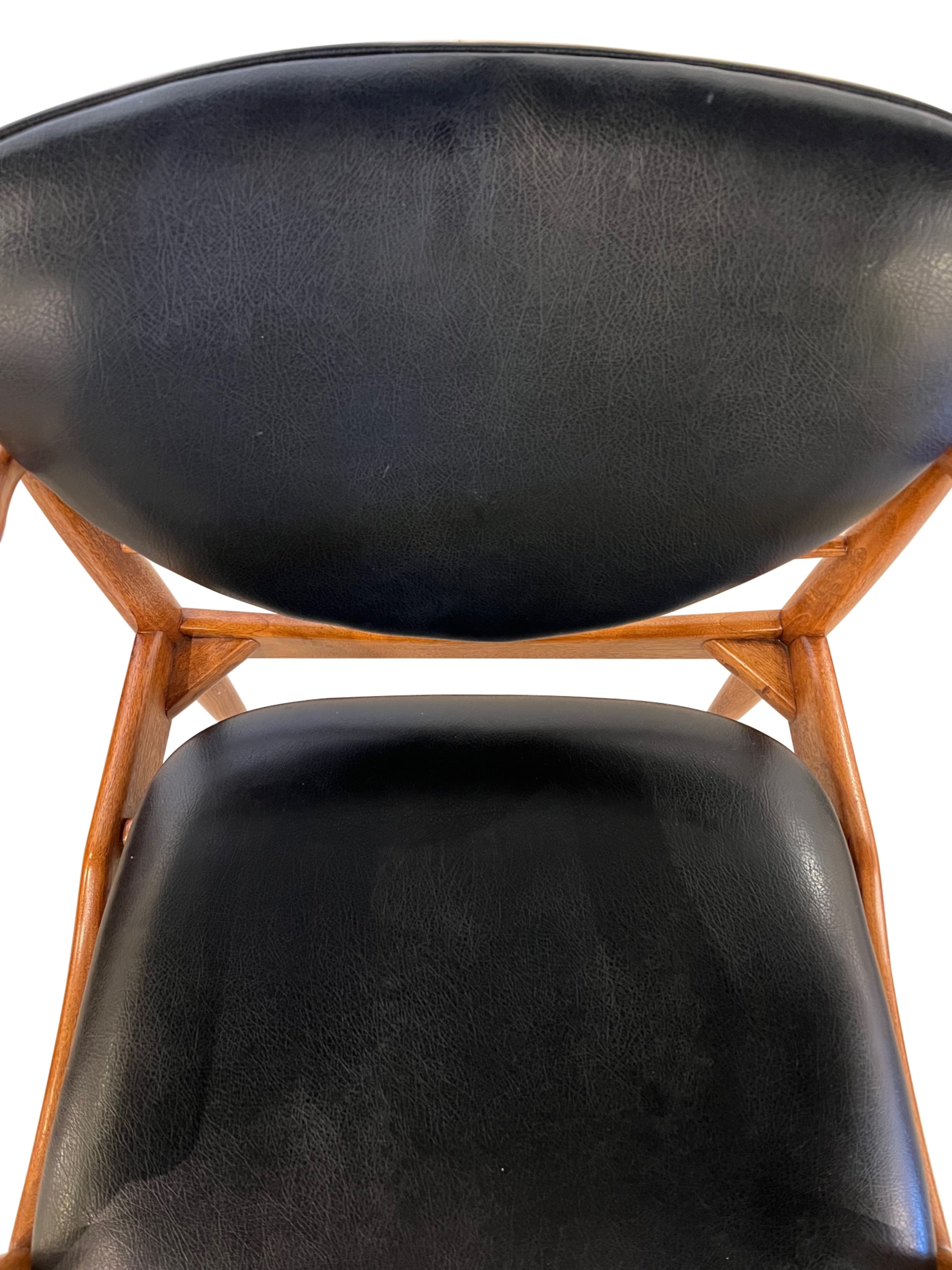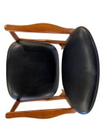 SET of 14 Danish Mid-Century walnut dining chairs with black leather seat and heart shaped back cushions for the armchairs and side chairs having heart shaped wood panel backs (PRICED AS SET)(10 Side Chairs, 4 Armchairs) (FINN JUHL)