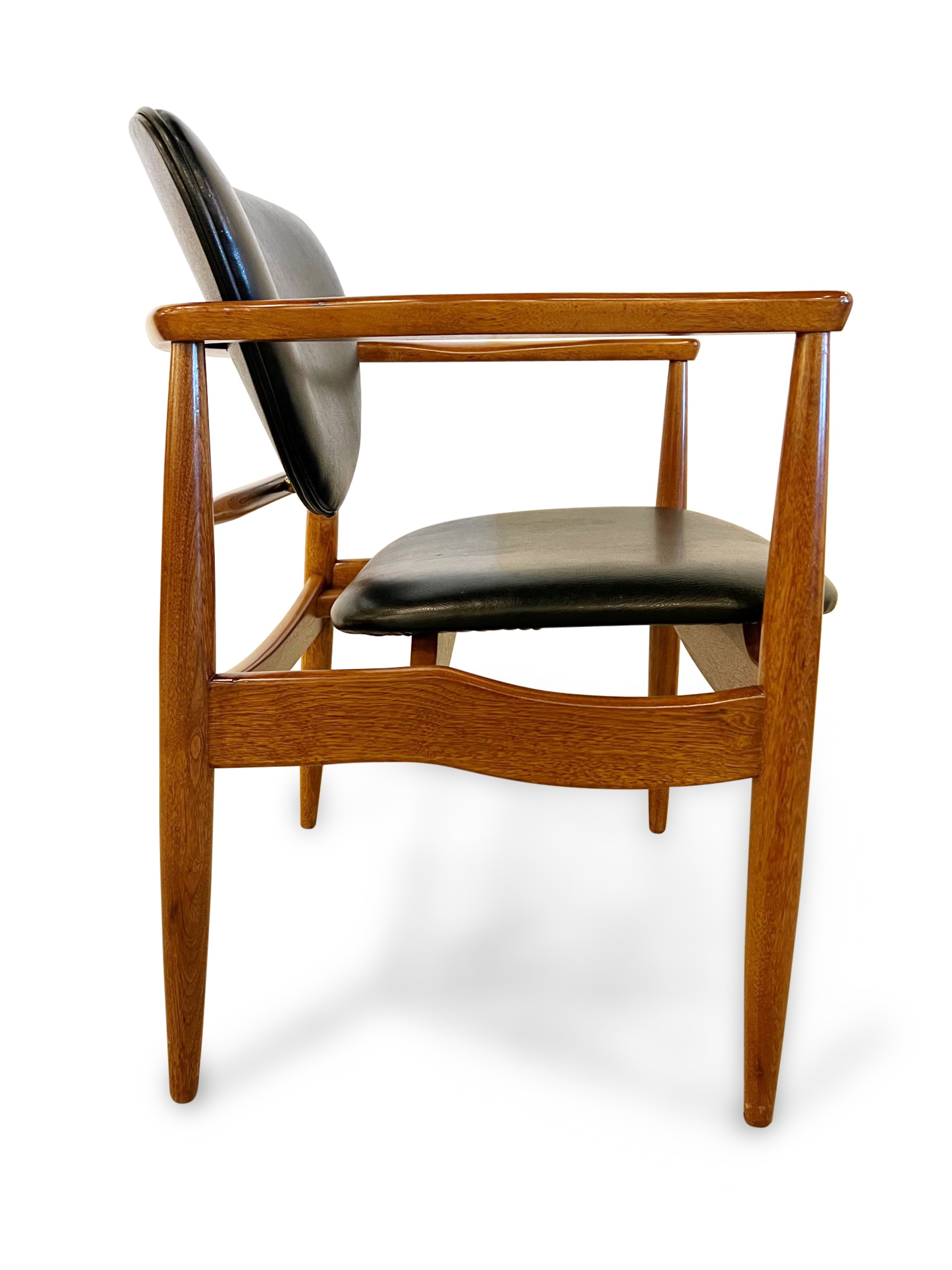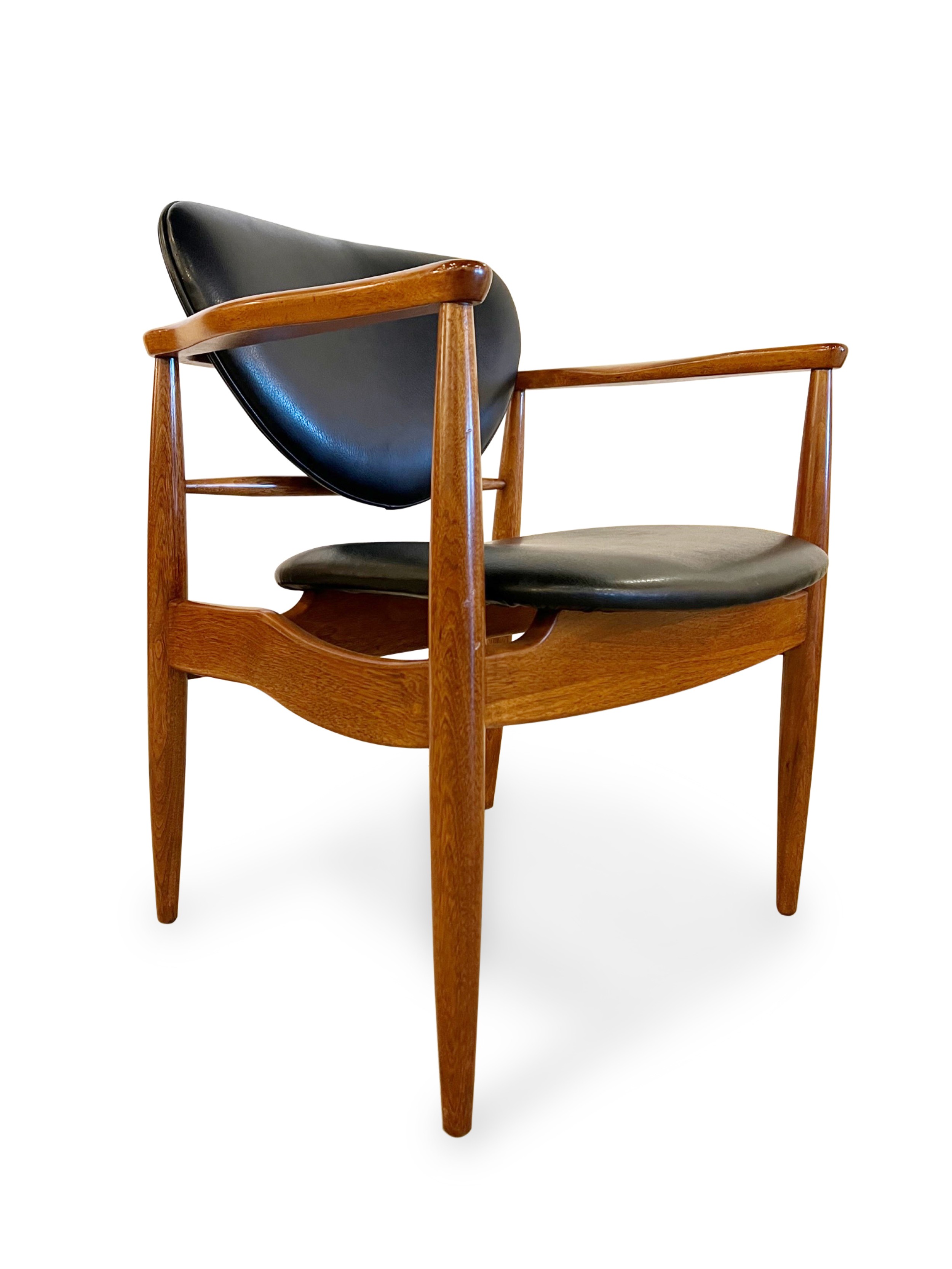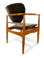 Finn Juhl (1912-1989) was a Danish furniture and interior designer, widely recognized for his contributions to the field of modernist design. He is considered one of the leading figures of the Danish Modern movement, which emerged in the mid-20th century. Born on January 30, 1912, in Frederiksberg, Denmark, Juhl initially pursued a career in architecture, studying at the Royal Danish Academy of Fine Arts in Copenhagen. However, his passion for furniture design soon took precedence, leading him to establish his own design studio in 1945. Juhl's designs were characterized by their organic forms, innovative use of materials, and meticulous craftsmanship. He drew inspiration from various sources, including traditional Danish craftsmanship, modernist principles, and international design trends. Juhl's pieces often featured sculptural shapes, fluid lines, and a harmonious balance between form and function. One of Juhl's most iconic designs is the "Chieftain Chair" (1949), which exemplifies his distinctive style. This chair showcases Juhl's ability to combine comfort, aesthetics, and functionality in a single piece. It features a high backrest, sculpted armrests, and a floating seat, all crafted with exquisite attention to detail. In addition to furniture design, Juhl also ventured into interior design, creating innovative and visionary spaces. He believed that furniture and interior design should be integrated seamlessly, resulting in harmonious environments that enhance the overall experience. Throughout his career, Juhl received numerous accolades for his work. He was awarded the prestigious Lunning Prize in 1951, which recognized his significant contributions to Scandinavian design. Juhl's designs gained international recognition and were exhibited in renowned museums and galleries worldwide. Finn Juhl's influence on modernist design extended beyond his own creations. He played a pivotal role in promoting Danish design internationally, helping establish Denmark as a leading hub for innovative and influential furniture design. Juhl continued to work and inspire others until his death on May 17, 1989. His designs remain highly sought after by collectors and enthusiasts, and his legacy as a pioneer of modernist furniture design endures to this day.
