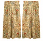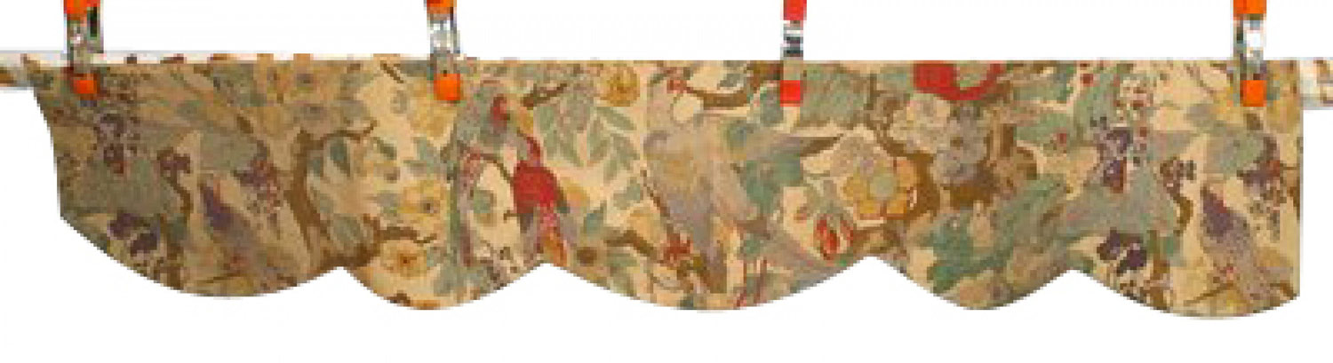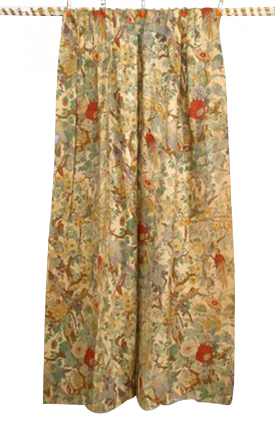 Set of 3, Pair of Floral and Bird Linen Drapes and 1 Valance