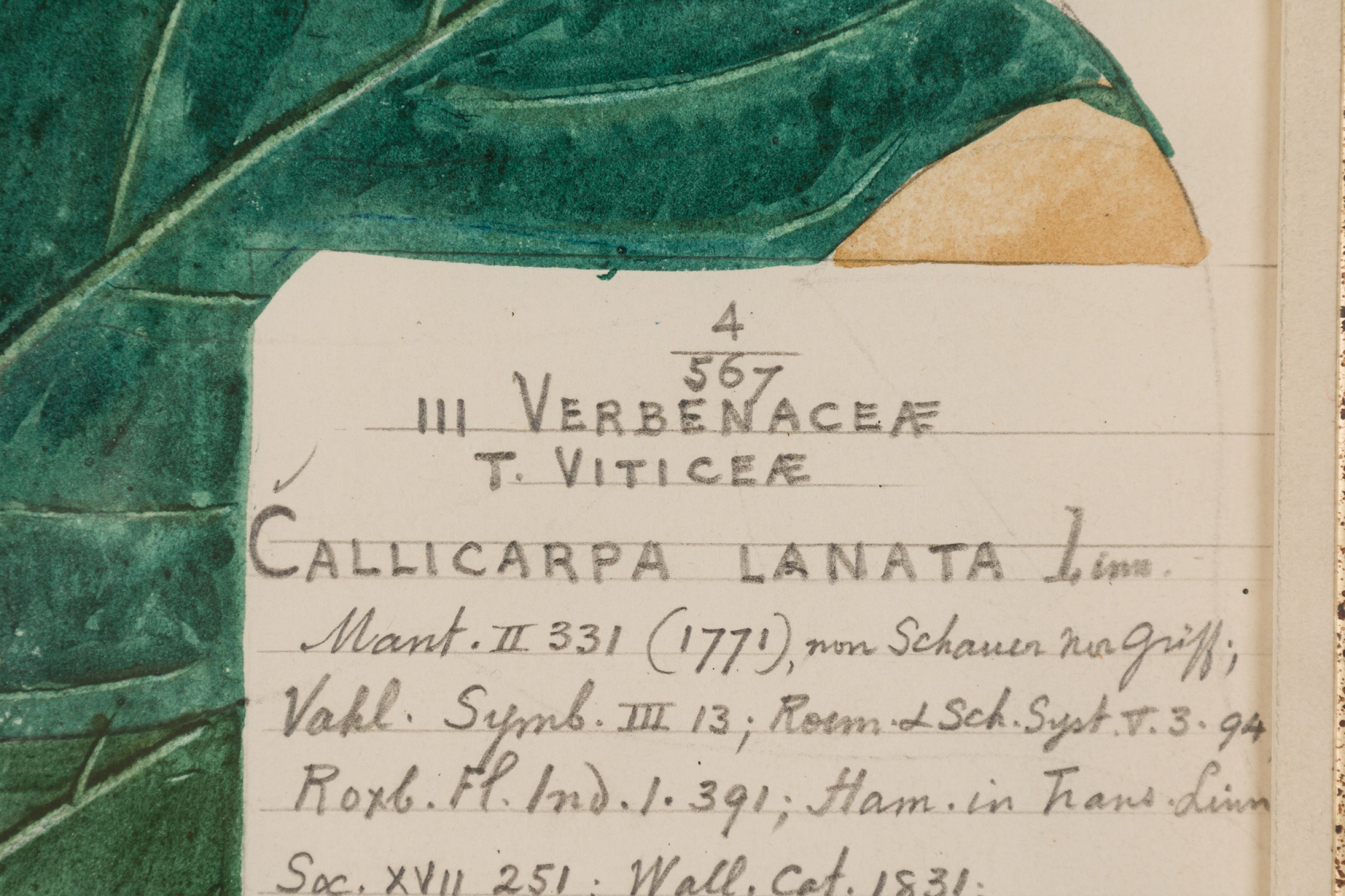 Framed American Victorian 19th Century Watercolor Botanical Drawing, "Callicarpa Lanata"