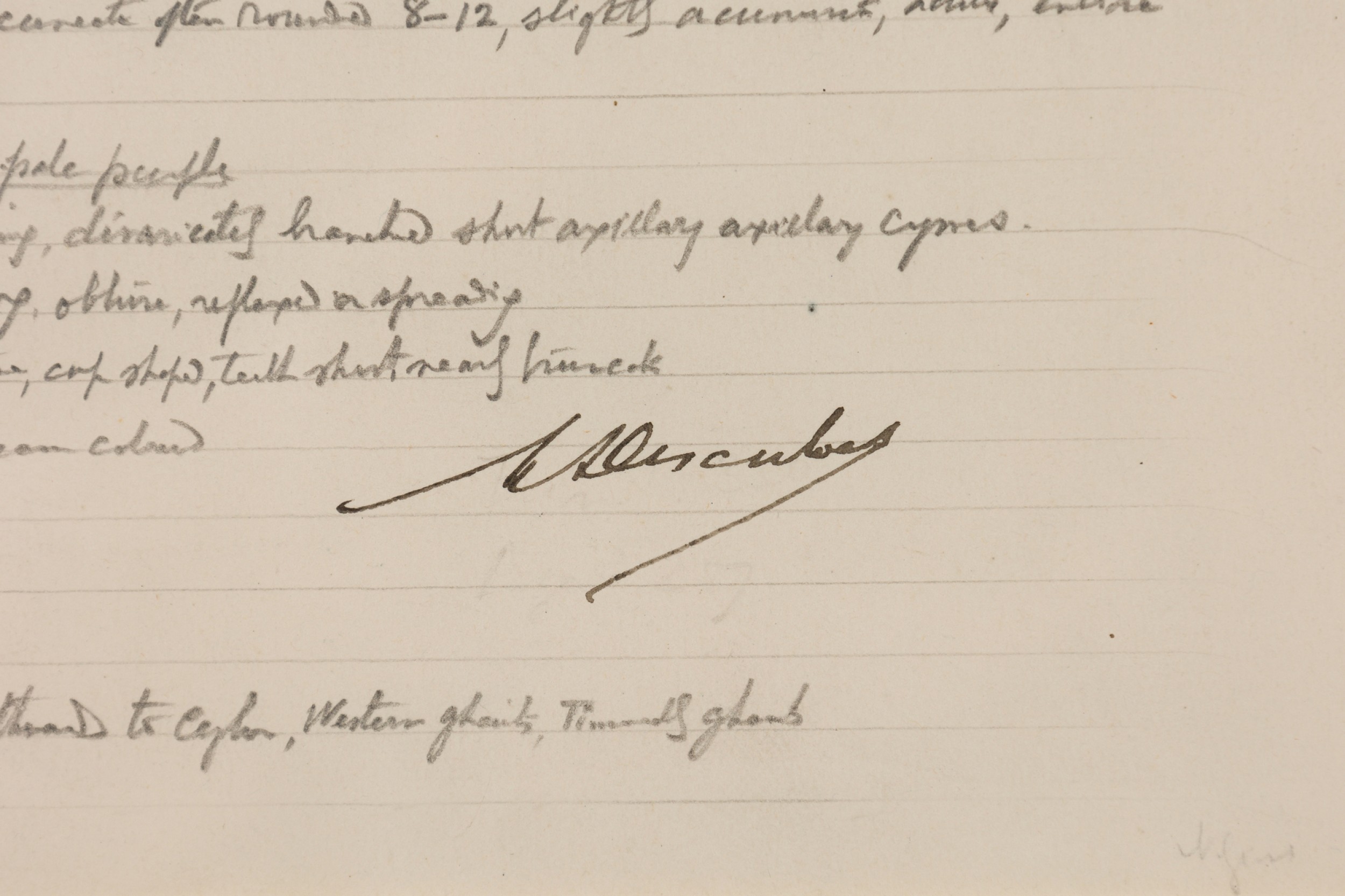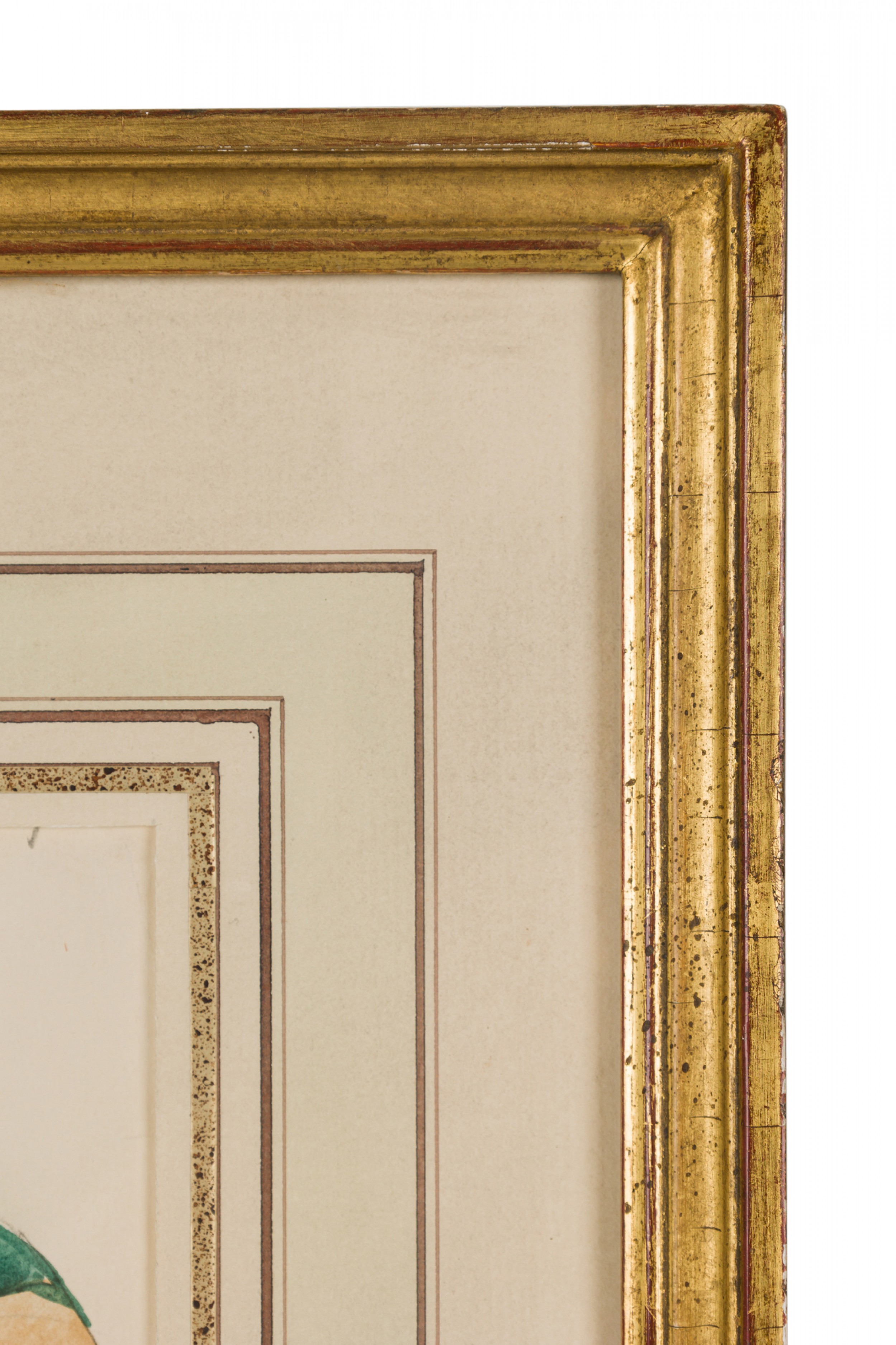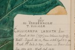 American Victorian (19th Century) watercolor, ink, and pencil botanical drawing depicting a Callicarpa Lanata plant in green tones against a beige background, matted in a beveled parcel gilt painted wood frame. (Part of large set: 063653A, Companion pieces available individually: 063653-063701)