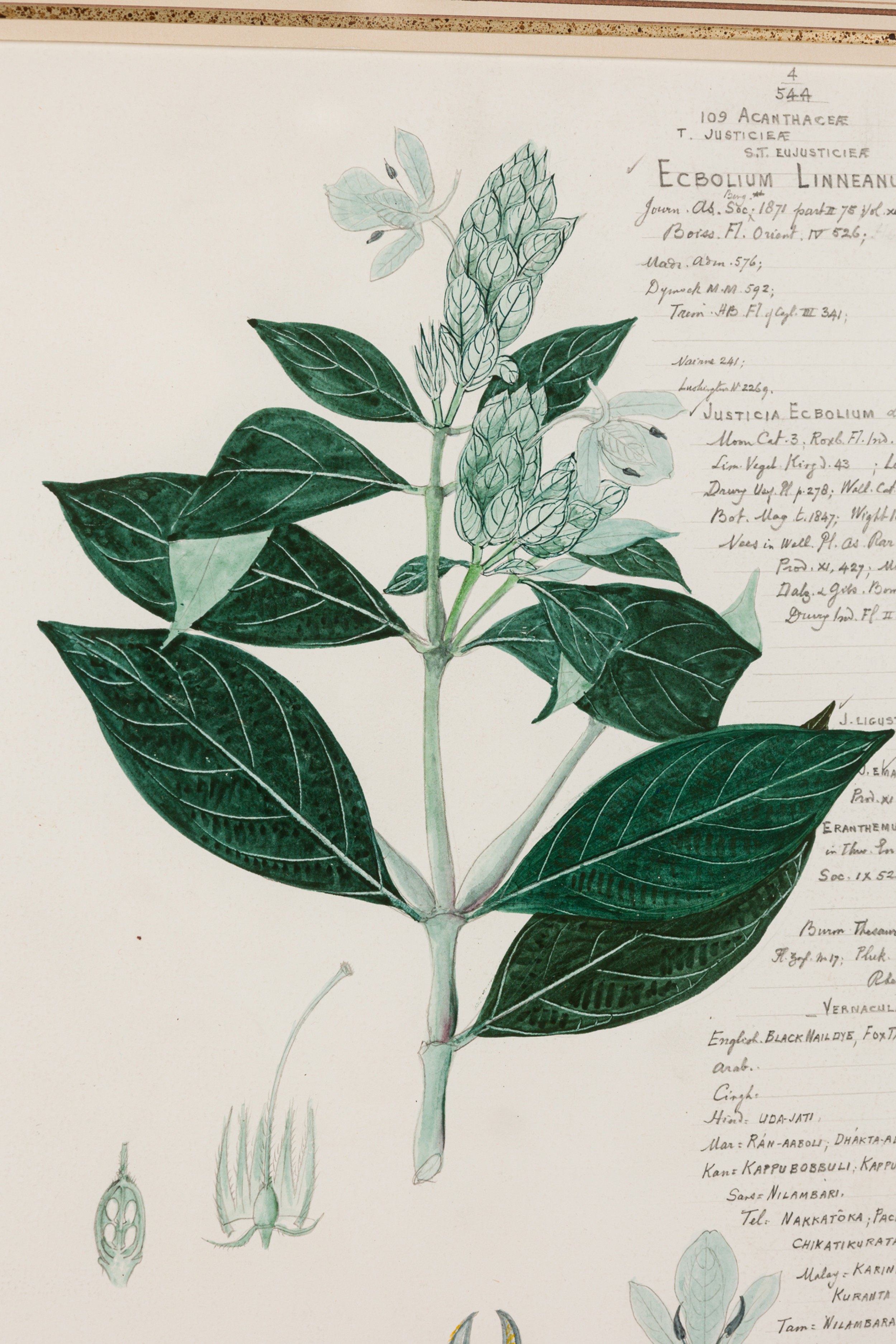 Framed American Victorian 19th Century Watercolor Botanical Drawing, "Ecbolium Linneanum"