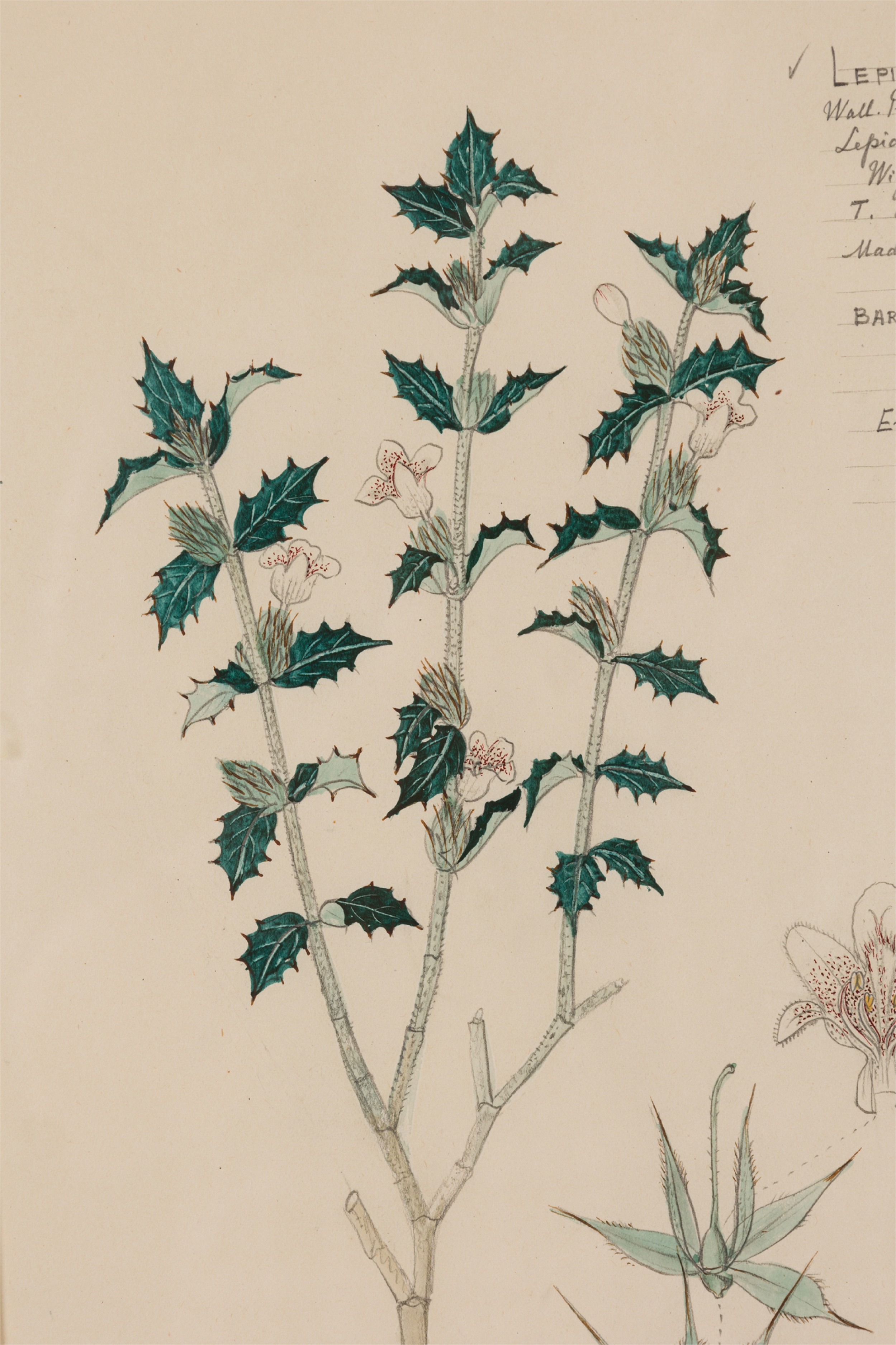 Framed American Victorian 19th Century Watercolor Botanical Drawing, "Lepidagathis Pungens"