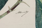 American Victorian (19th Century) watercolor, ink, and pencil botanical drawing depicting a Phlogacanthus Thyrsiflorus plant in green tones against a beige background, matted in a beveled parcel gilt painted wood frame. (Part of large set: 063653A, Companion pieces available individually: 063653-063701).