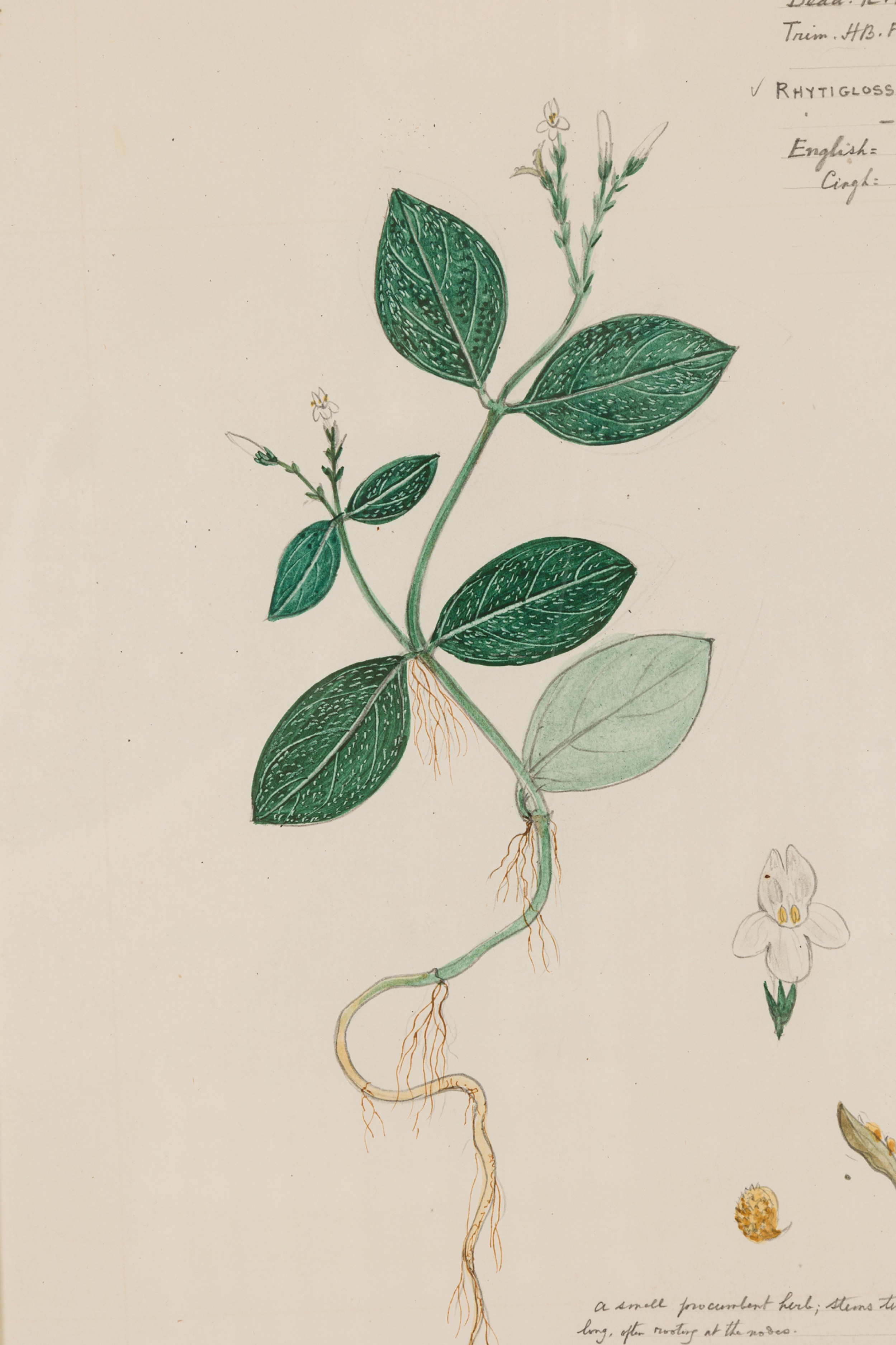 Framed American Victorian 19th Century Watercolor Botanical Drawing, "Ptyssiglottis Radicosa"