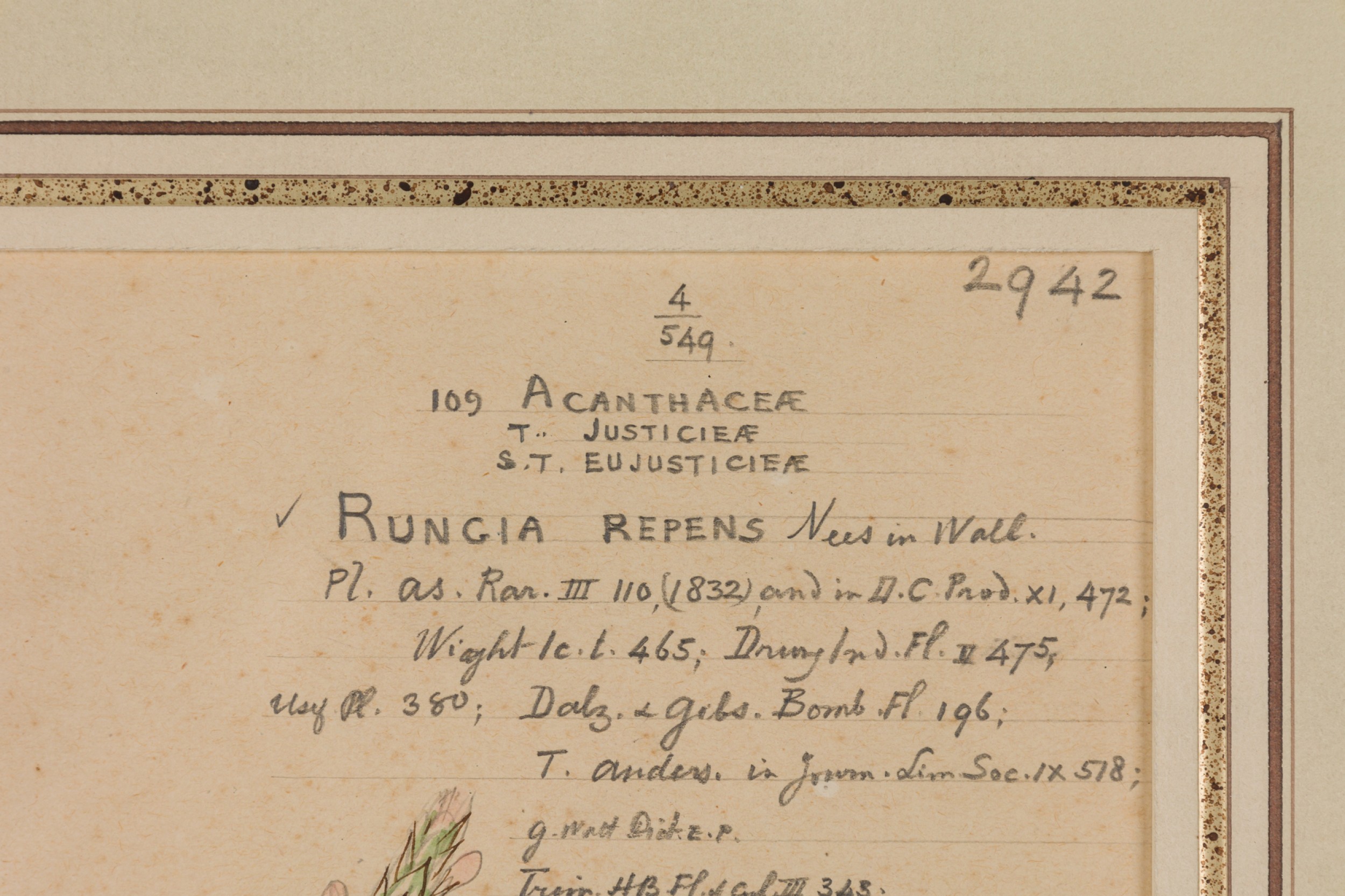 Framed American Victorian 19th Century Watercolor Botanical Drawing, "Rungia Repens"