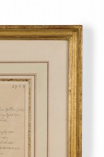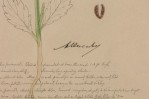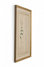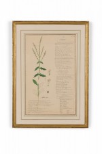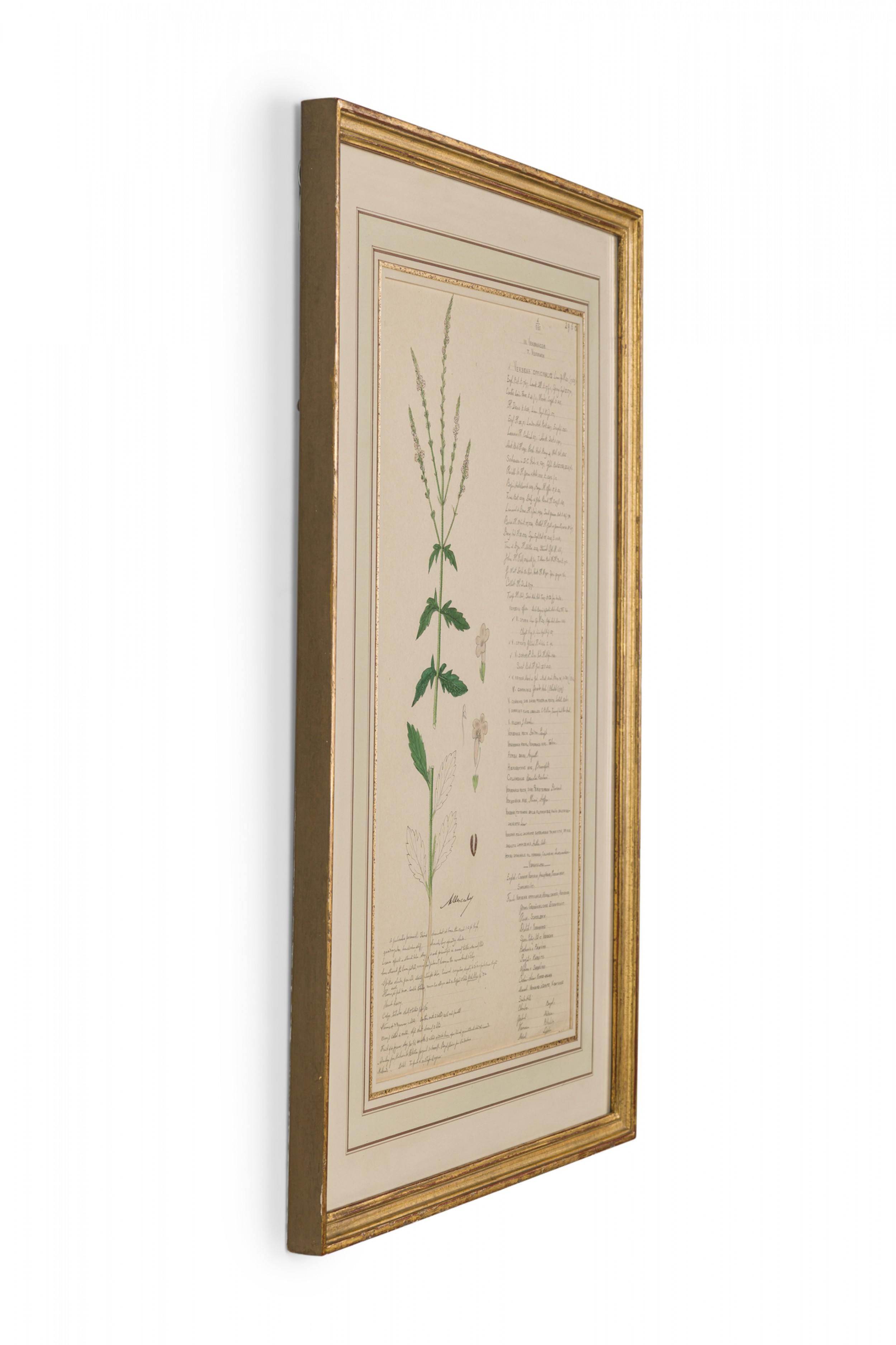American Victorian (19th Century) watercolor, ink, and pencil botanical drawing depicting a Verbena Officinalis plant in green tones against a beige background, matted in a beveled parcel gilt painted wood frame. (Part of large set: 063653A, Companion pieces available individually: 063653-063701)