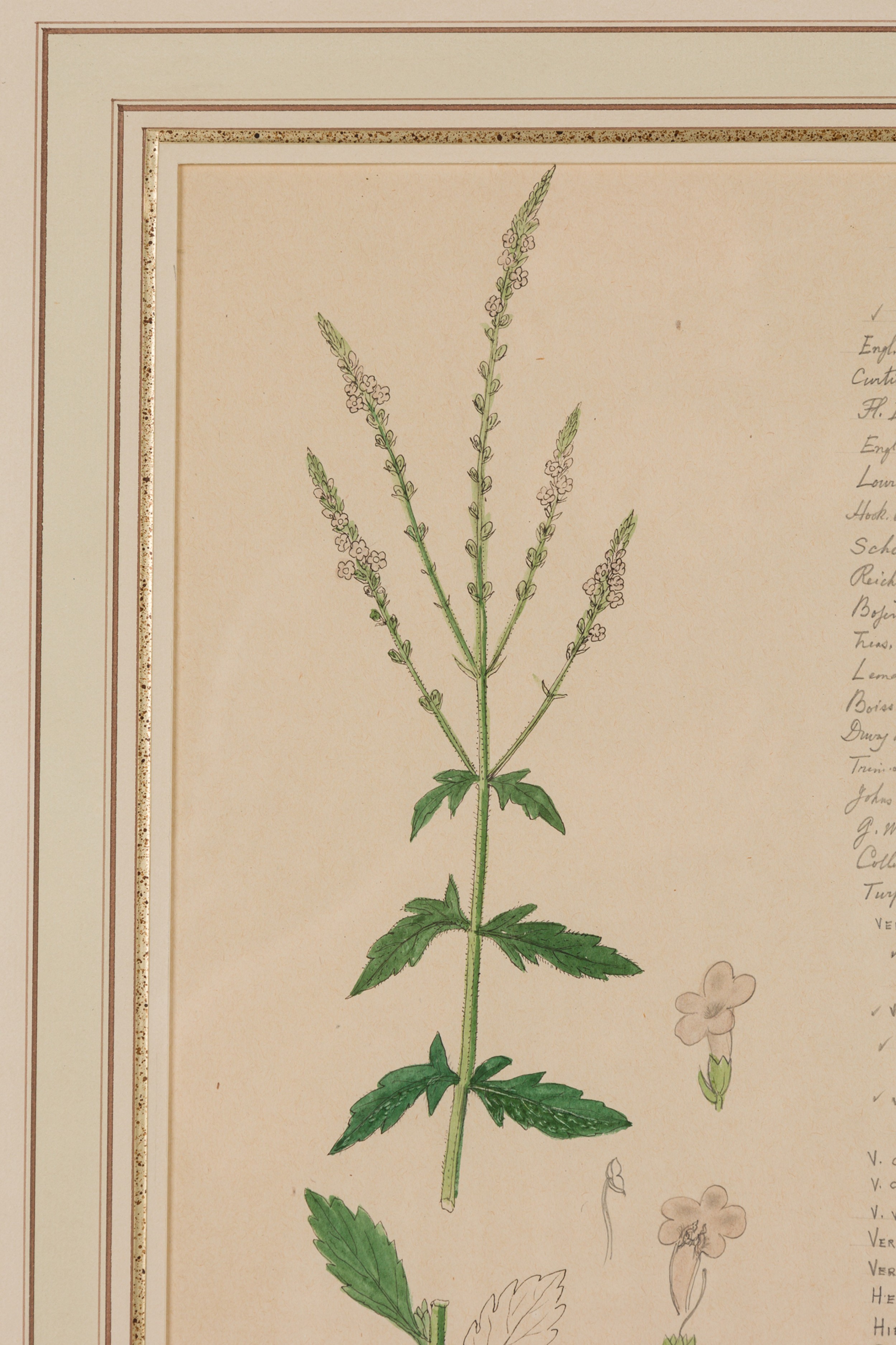 Framed American Victorian 19th Century Watercolor Botanical Drawing, "Verbena Officinalis"