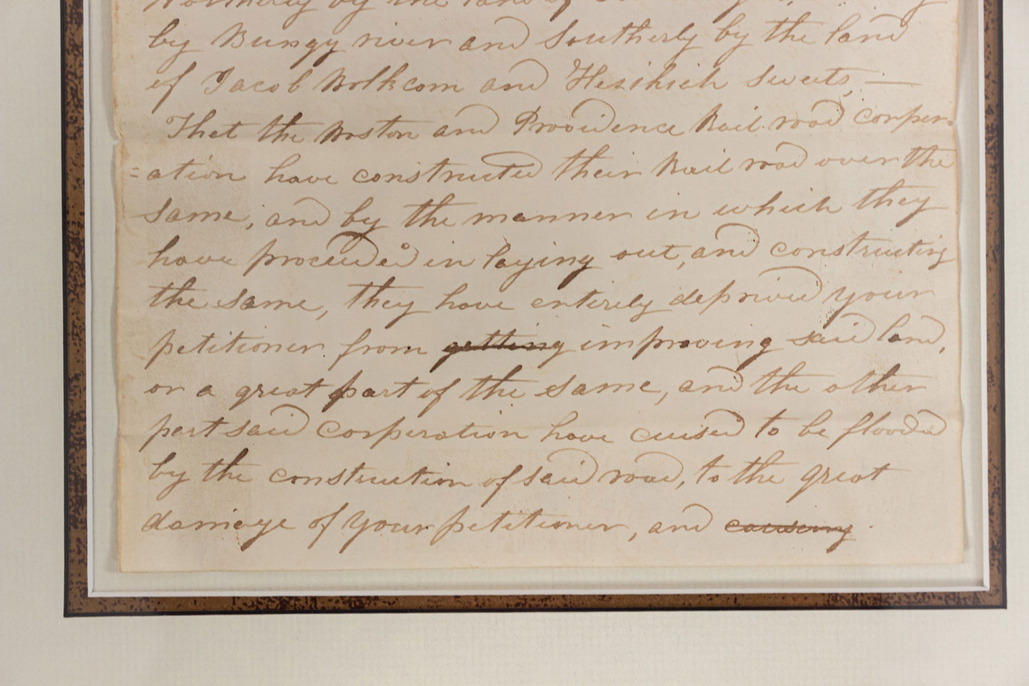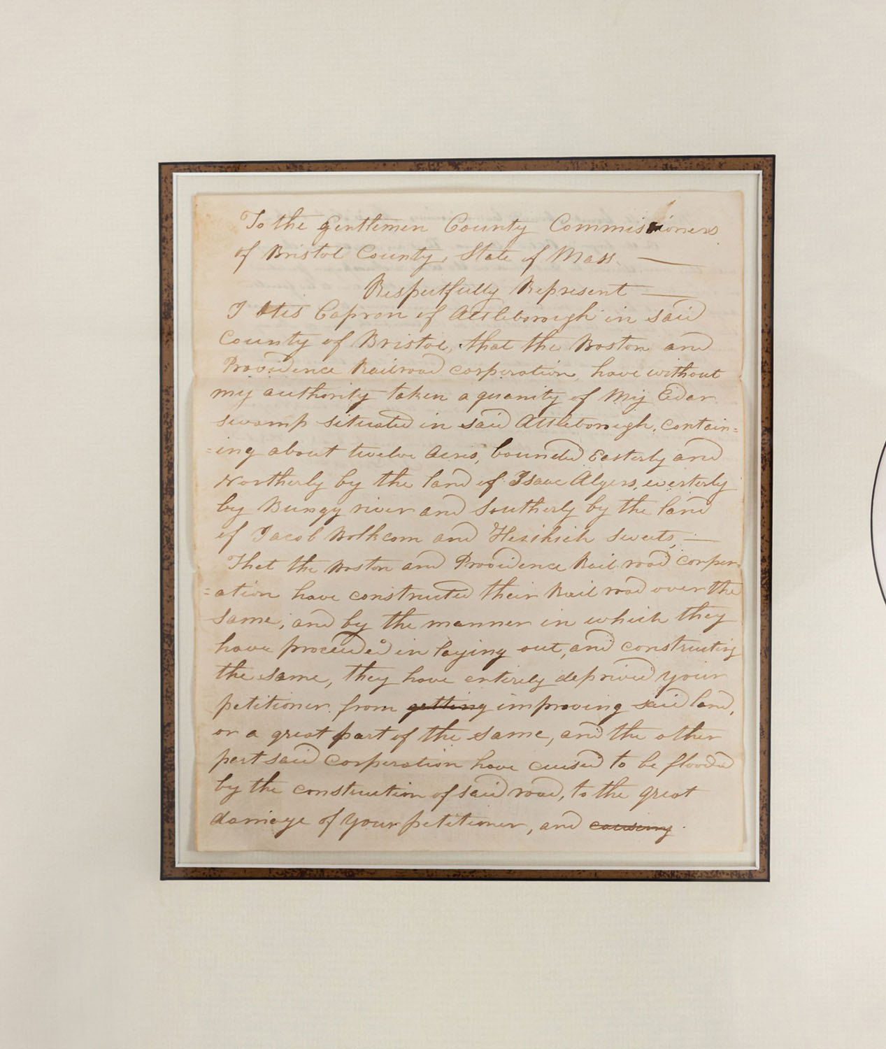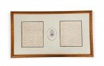 American (19th Century) copy collection of two letters from the 1830s in a white mat with a central oval printed portrait of a gentleman (Otis Cafron) in a gold wooden frame..
