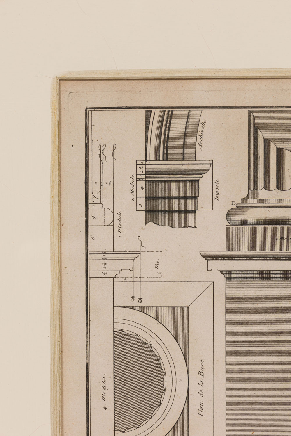 Framed Italian Neo-Classic Engravings of an Ionic Base Pedestal Diagram