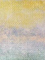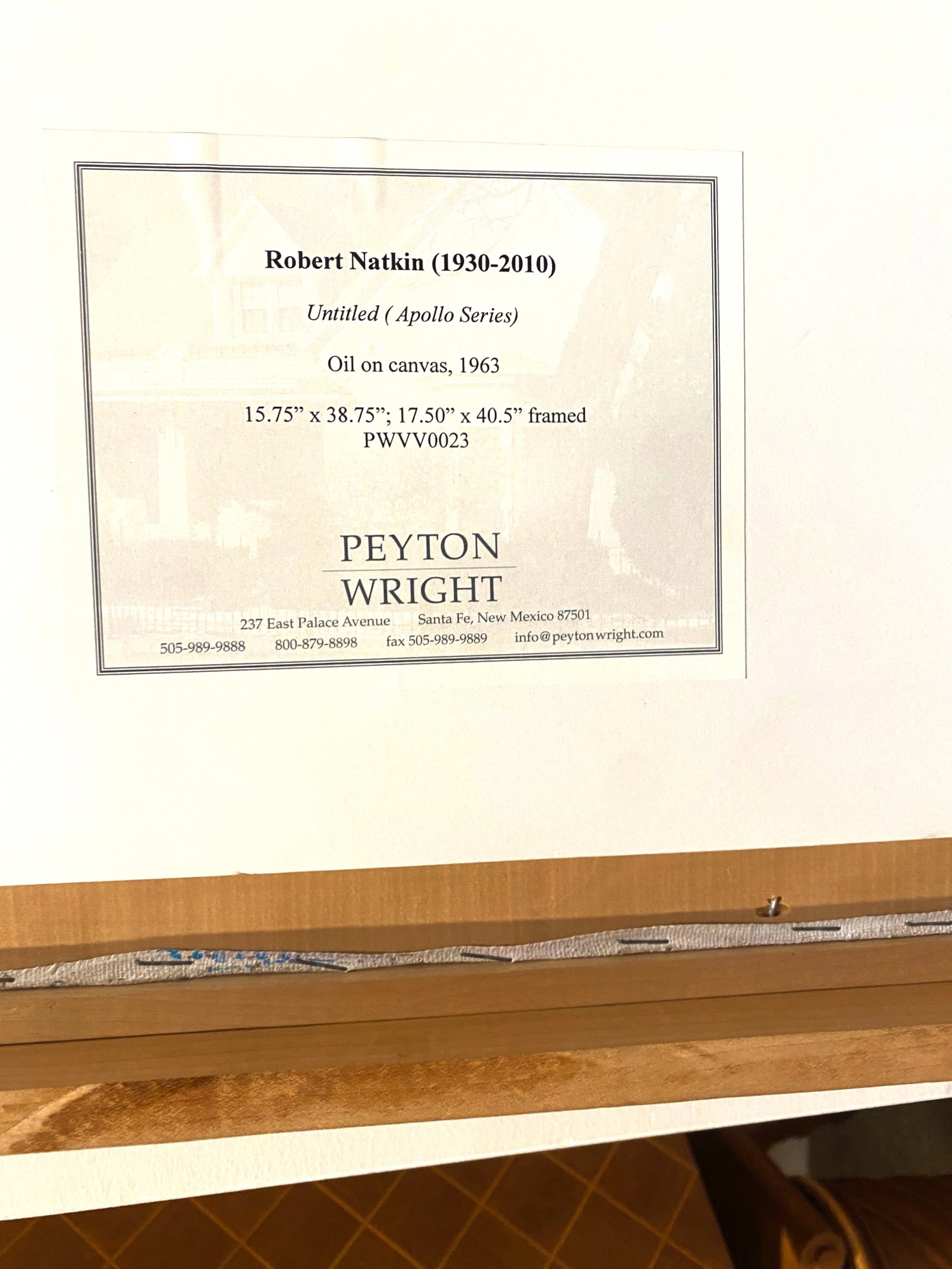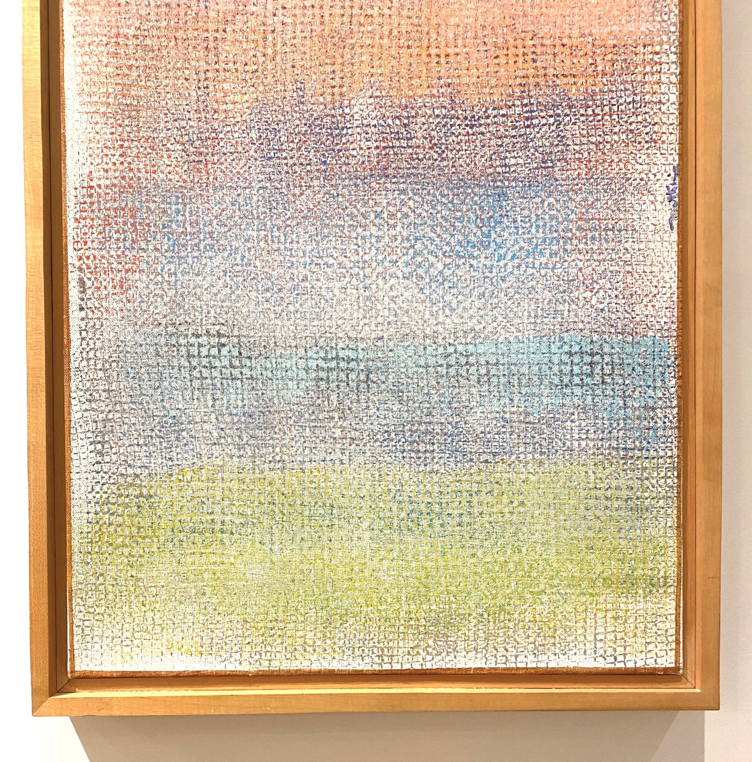 American abstract oil painting featuring pastel ombre color washes on textured canvas in a wooden frame. ("Untitled" Apollo Series, 1963, signed, ROBERT NATKIN).