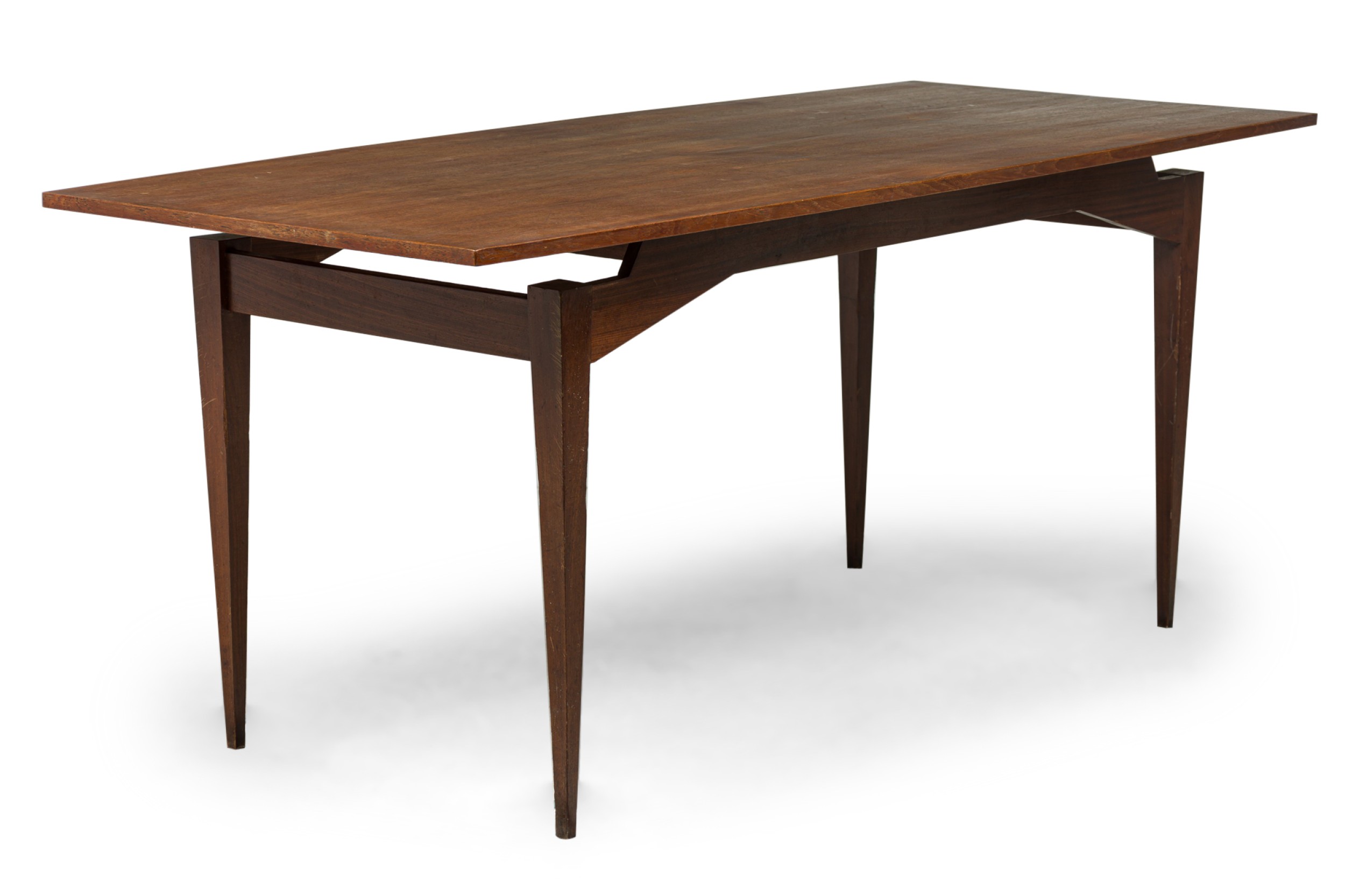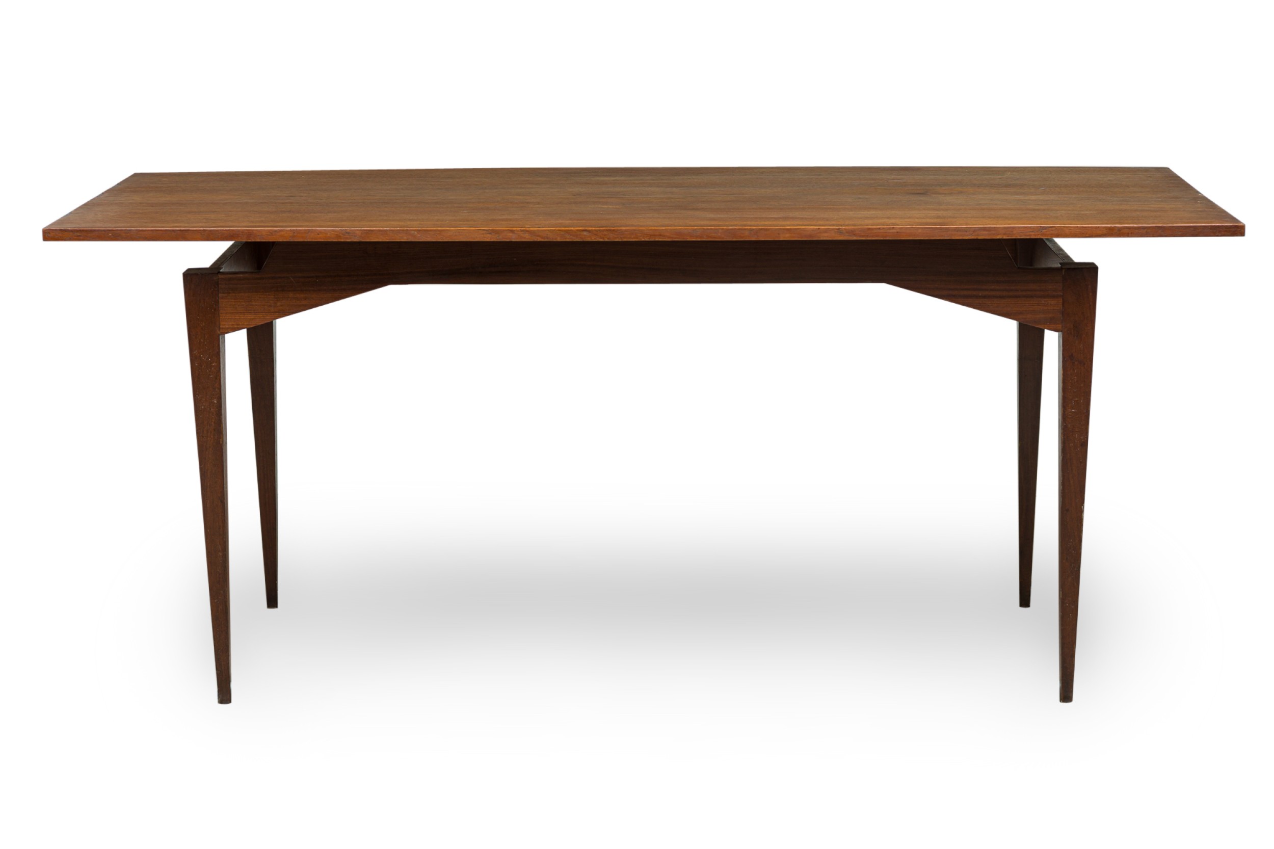 Italian mid-century walnut dining table resting on four tapered legs (att: FRANCO ALBINI)