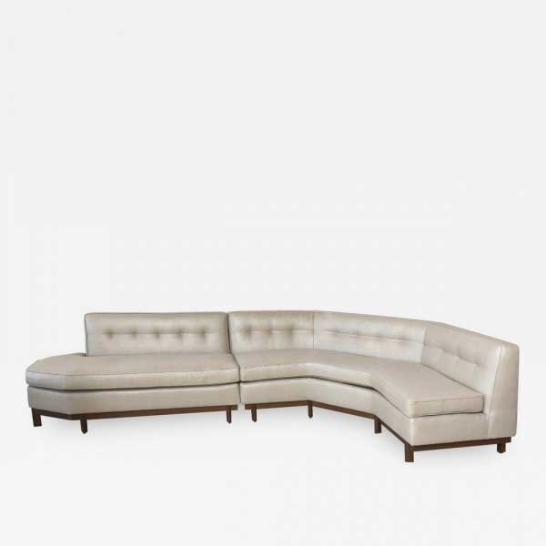 American Modern (1950s) upholstered beige sectional sofa. (FRANK LLOYD WRIGHT FOR HERITAGE HENRENDON)