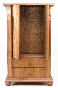 Style: Mid-Century Materials & Techniques: Bronze, inlaid, maple Category: Cabinets & Case Goods