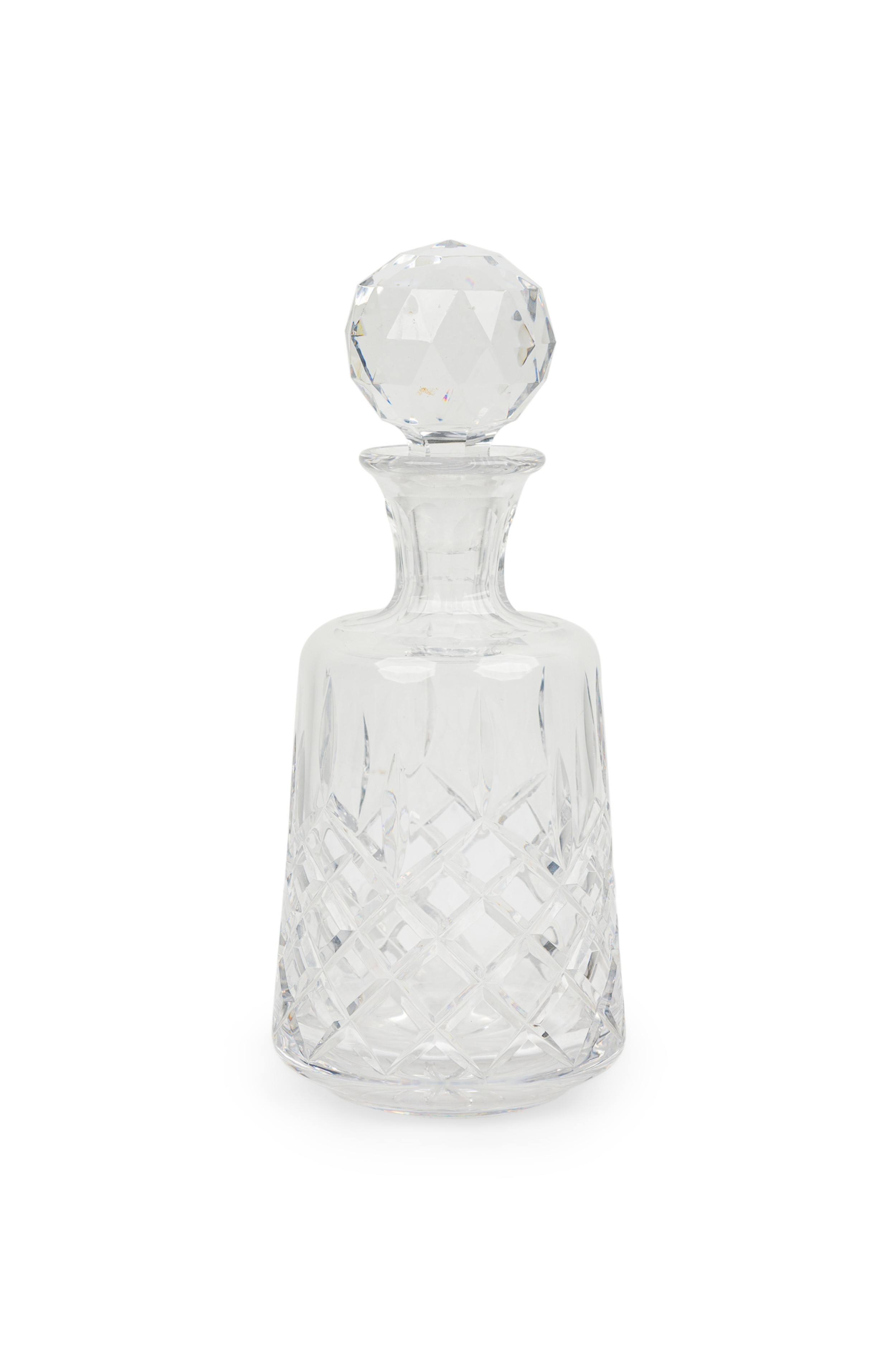French Victorian style Baccarat tapered cylindrical shaped decanter used for tequila with stopper having a criss-cross cut design.