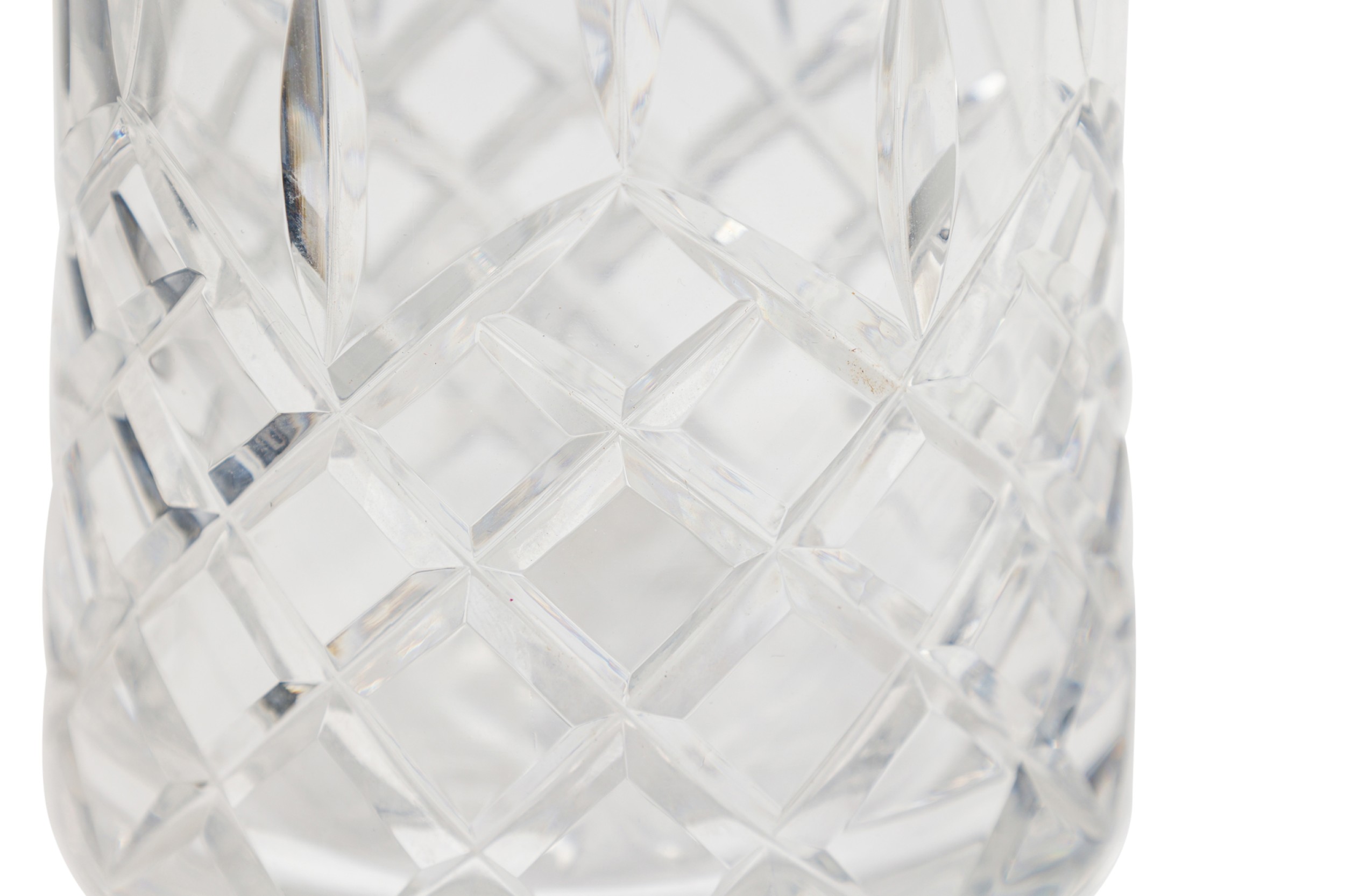 French Victorian style Baccarat tapered cylindrical shaped decanter used for tequila with stopper having a criss-cross cut design
