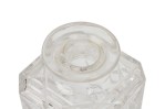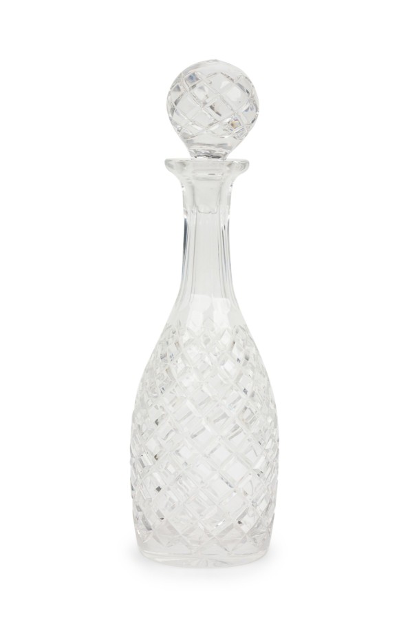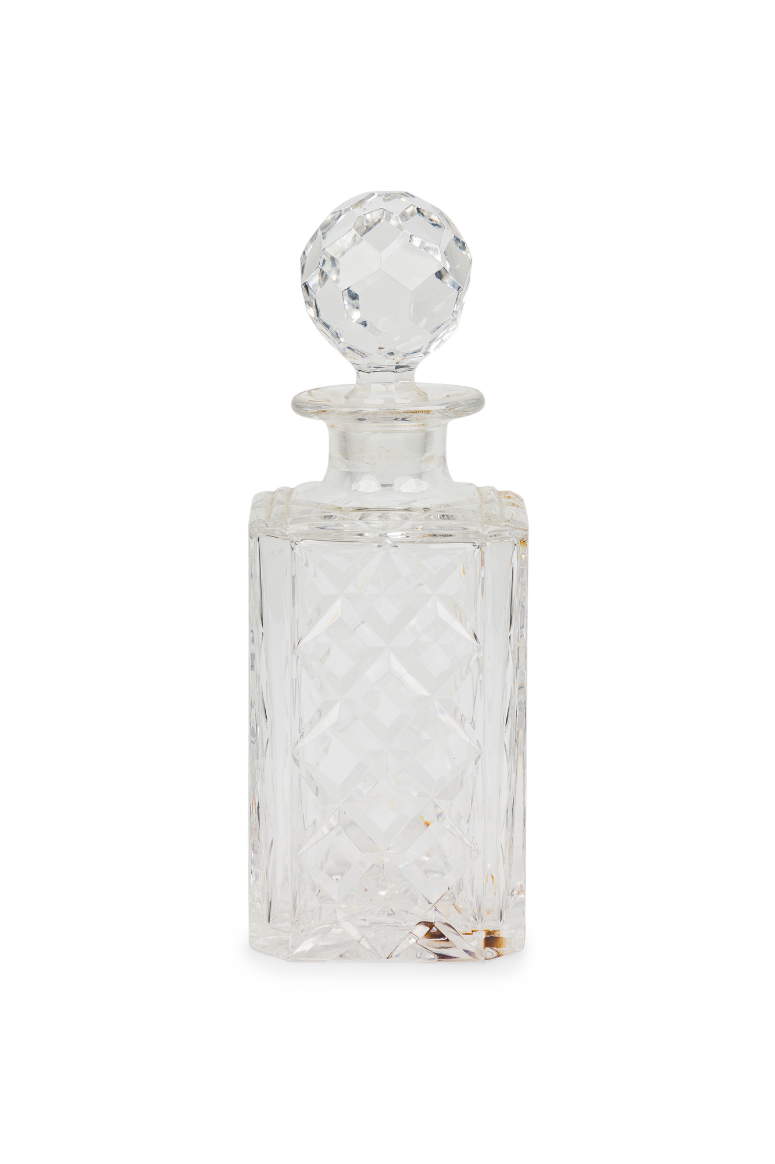 French Victorian Style Square Baccarat crystal whiskey decanter with stopper having a criss-cross cut design with a ball stoppper