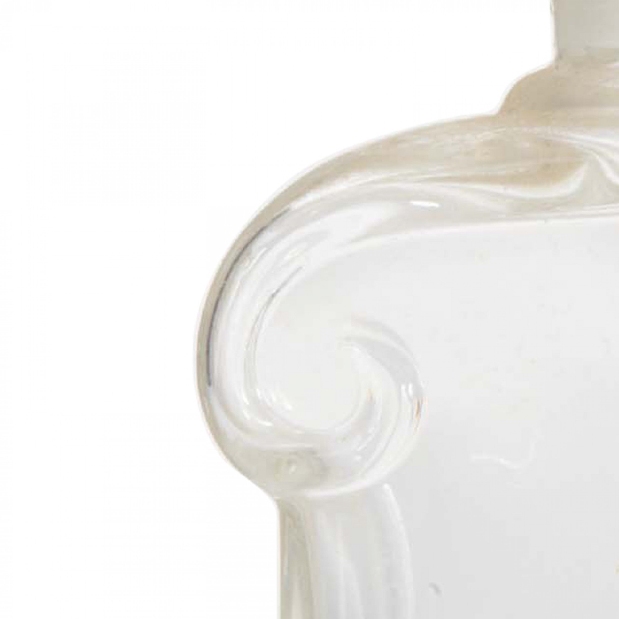 French Art Deco glass perfume bottle with scrolled shoulders and a heart shaped stopper ( by BACCARAT for Guerlain "Mitsouko or L'heure Bleu").