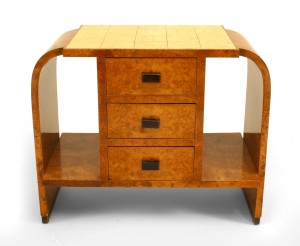 Style: Art Deco Materials & Techniques: Burl, maple, shag, walnut Category: Tables