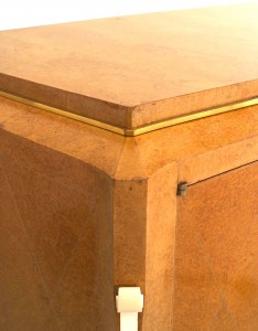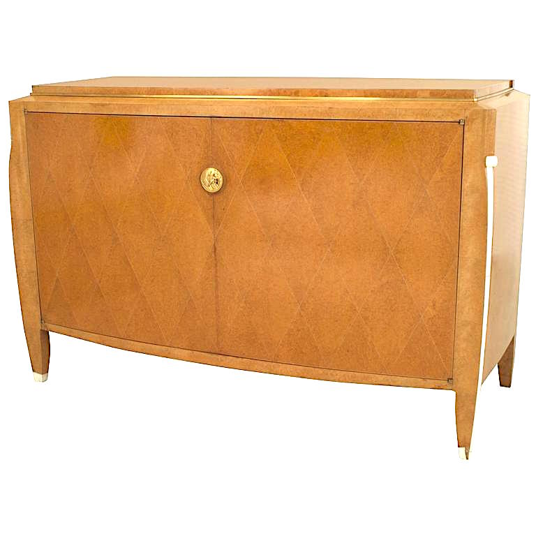 Style: Art Deco Materials & Techniques: Amboyna, brass, bronze, burl, inlay, wood Category: Tables, Cabinets & Case Goods, Dining Room