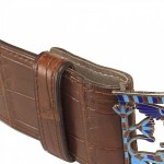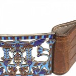 French Art Deco Crocodile Belt with Cloisonne Buckle