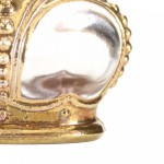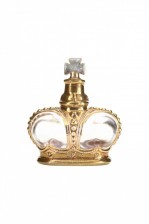 French Art Deco small crown shaped clear glass perfume bottle (CROWN JEWEL by PRINCE MATCHABELLI) with gilded metal details and a Maltese cross shaped stopper.