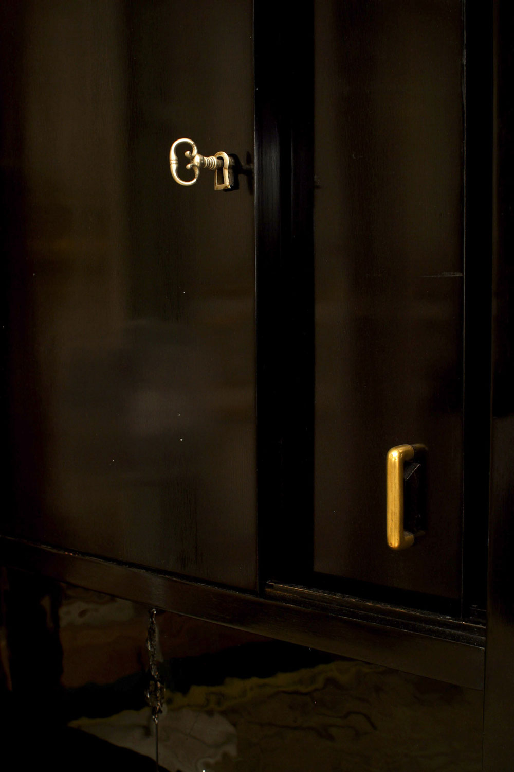 Style: Art Deco Materials & Techniques: Ebonized, glass Category: Cabinets & Case Goods, Office/Library