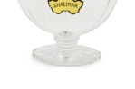French Art Deco urn-shaped glass perfume bottle with a fan-shaped blue-tinted glass stopper, with brand name "Guerlain" written in gold and a silver sticker with perfume name "Shalimar" (signed BACCARAT)